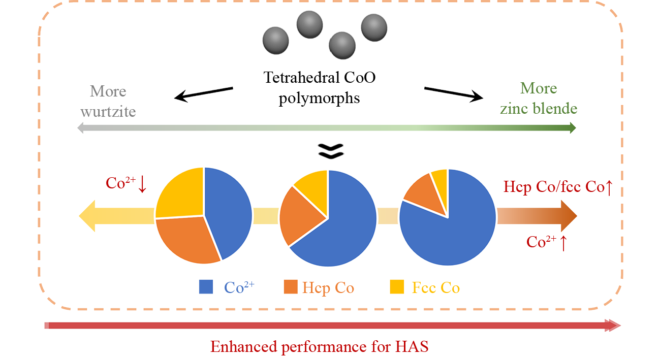 Higher alcohol synthesis directly from syngas is highly desirable as one of the efficient non-petroleum energy conversion routes. Co0–CoO catalysts showed great potential for this reaction, but the alcohol selectivity still needs to be improved and the crystal structure effect of CoO on catalytic behaviors lacks investigation. Here, a series of tetrahedrally coordinated CoO polymorphs were prepared by a thermal decomposition method, which consisted of wurtzite CoO and zinc blende CoO with varied contents. After diluting with SiO2, the catalyst showed excellent performance for higher alcohol synthesis with ROH selectivity of 45.8% and higher alcohol distribution of 84.1 wt % under the CO conversion of 38.0%. With increasing the content of wurtzite CoO, the Co0/Co2+ ratio gradually increased in the spent catalysts, while the proportion of highly active hexagonal close packed cobalt in Co0 decreased, leading to first decreased then increased CO conversion. Moreover, the higher content of zinc blende CoO in fresh catalyst facilitated the retention of more Co2+ sites in spent catalysts, promoting the ROH selectivity but slightly decreasing the distribution of higher alcohols. The catalyst with 40% wurtzite CoO obtained the optimal performance with a space time yield toward higher alcohols of 7.9 mmol·gcat–1·h–1.