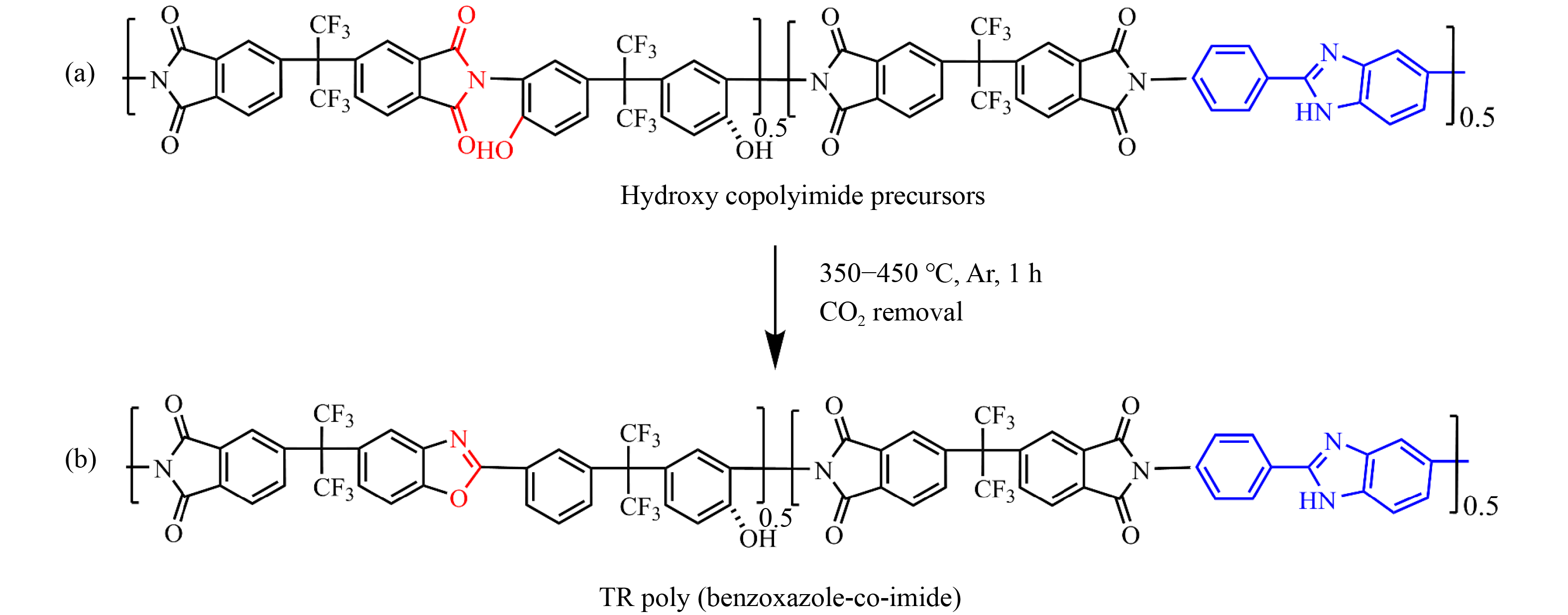 Membrane gas separation is an energy-efficient approach to extract helium from natural gas. However, the limited separation performance shown as Robeson’s upper bound has hindered the techno-economic feasibility. This study introduces an advanced copolyimide membrane engineered for He extraction from natural gas. The membranes were facilely achieved by dip-coating the α-alumina substrates in the copolyimide solution followed by in situ thermal rearrangement. In addition to the rigid 5-amino-2-(4-aminobenzene)benzimidazole segments, the active ortho-hydroxyl groups were converted to benzoxazole rings, contributing to extra micropores. The membrane showed an improved mixture selectivity of 120 and He permeance of 23.5 GPU, far surpassing the performance of benchmark membranes for helium separation over CH4. The membrane also demonstrated long-term stability as evidenced by the continuous operation over 250 h. Additionally, the membrane exhibited resistance to impurities such as CO2 and C2H6, enduring the asymmetric membranes promising for practical helium extraction from natural gas.