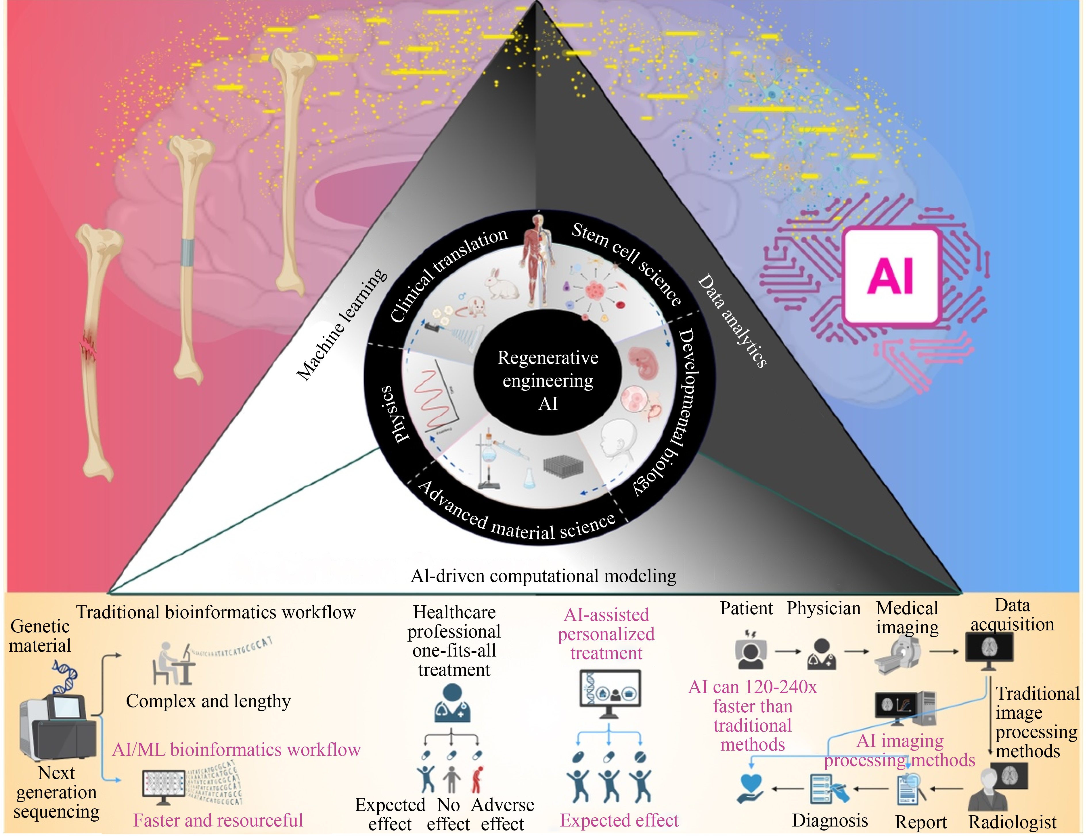 For over a decade, regenerative engineering has been defined as the convergence of advanced materials sciences, stem cell sciences, physics, developmental biology, and clinical translation for the regeneration of complex tissues. Recently, the field has made major strides because of new efforts made possible by the utilization of another growing field: artificial intelligence. However, there is currently no term to describe the use of artificial intelligence for regenerative engineering. Therefore, we hereby present a new term, “Regenerative Engineering AI”, which cohesively describes the interweaving of artificial intelligence into the framework of regenerative engineering rather than using it merely as a tool. As the first to define the term, regenerative engineering AI is the interdisciplinary integration of artificial intelligence and machine learning within the fundamental core of regenerative engineering to advance its principles and goals. It represents the subsequent synergetic relationship between the two that allow for multiplex solutions toward human limb regeneration in a manner different from individual fields and artificial intelligence alone. Establishing such a term creates a unique and unified space to consolidate the work of growing fields into one coherent discipline under a common goal and language, fostering interdisciplinary collaboration and promoting focused research and innovation.