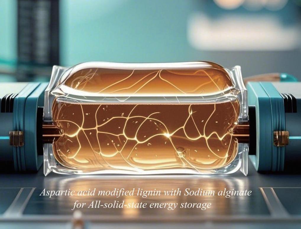 In this study, by subjecting forest resource biomass to amino acid modification treatment and ingeniously integrating it with the marine biomass sodium alginate, a flexible hydrogel electrolyte with both excellent mechanical properties and outstanding electrochemical performance was successfully prepared. The inspiration for the cover design originated from the experimental testing process, presenting a wonderful scene of the interwoven symbiosis of forest and marine biomass, full of a