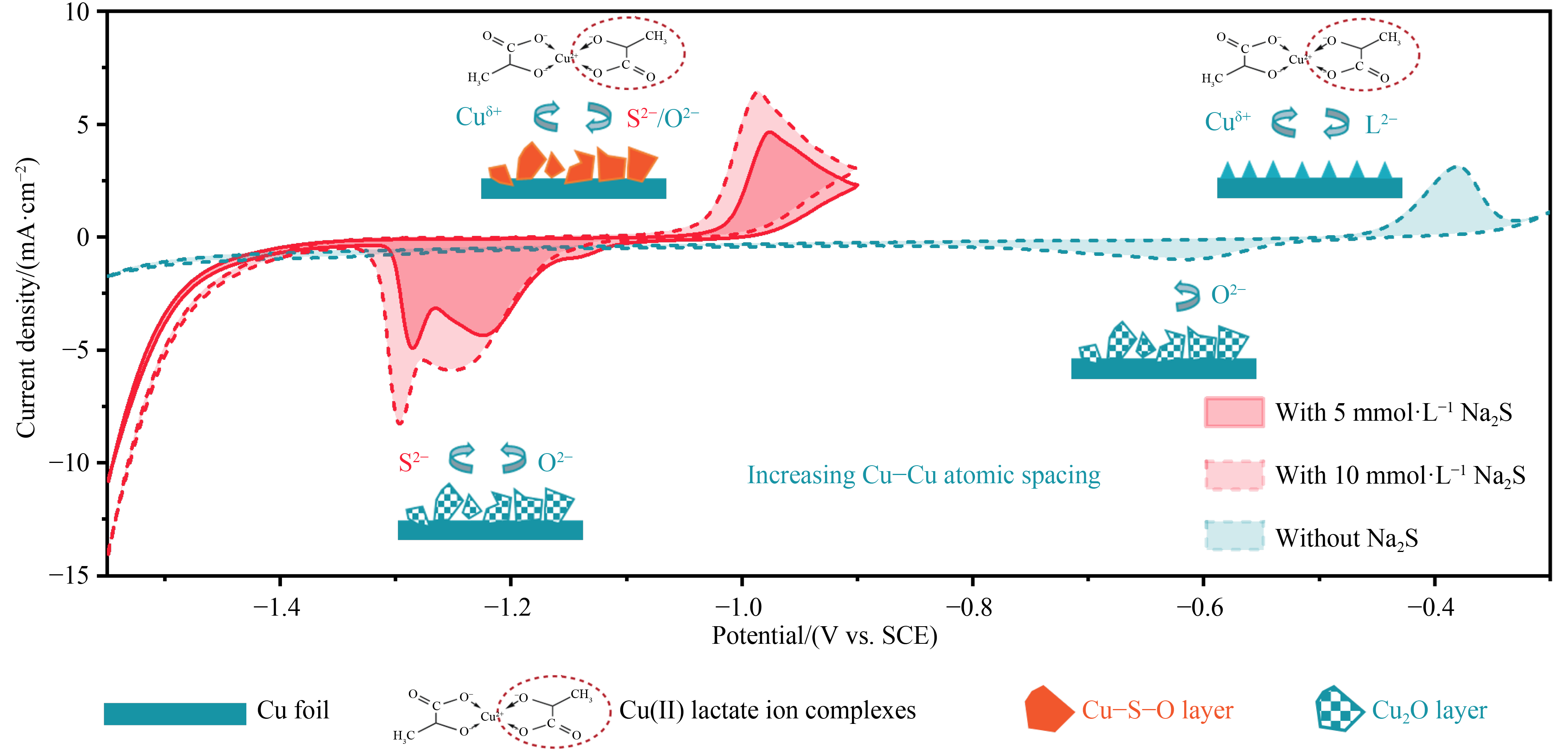 Copper-based catalysts play a pivotal role in CO2 electroreduction (CER) toward multi-carbon (C2+) products. However, achieving a high selectivity for C2+ products remains a formidable challenge. In this work, a facile electrochemical oxidation-reduction technique was developed to modulate the surface morphology of a copper foil using sulfur and oxygen as auxiliary atoms. Optimization of this approach resulted in an atomically reconstructed copper electrode (denoted as Cu-50) with a surface tensile strain of 1.1% and preferential exposure of Cu(100) facets. Cu-50 delivered remarkable Faradaic efficiencies (up to 72%) for C2+ products during CER, with a 53% selectivity for ethylene (10-fold higher than for a non-reconstructed Cu foil). This work guides the design of advanced copper-based catalysts that promote C–C coupling, demonstrating the potential of tailored copper structures for efficient conversion of CO2 to valuable C2+ products.