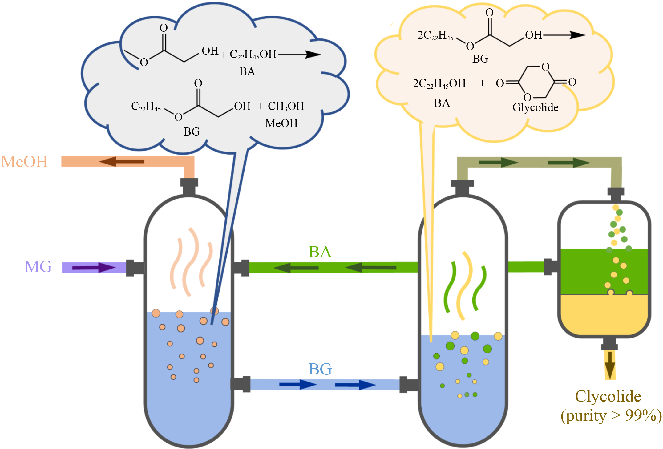High-purity glycolide is a key monomer for the synthesis of biodegradable polyglycolic acid. Here, we report a relay transesterification strategy for synthesizing high-purity glycolide directly from methyl glycolate, by using behenyl alcohol as a recyclable transesterification agent. This strategy achieves an average purity of 99.3% for glycolide without forming oligomers, and thus can avoid the energy-intensive purification required in the conventional route. Mechanistic studies indicate that methyl glycolate is first converted into behenyl glycolate via hetero-intermolecular transesterification during the relay transesterification process, and then the behenyl glycolate undergoes a homo-intermolecular transesterification to form behenyl dimer glycolate, which then undergoes intramolecular backbiting transesterification to yield glycolide and behenyl alcohol.