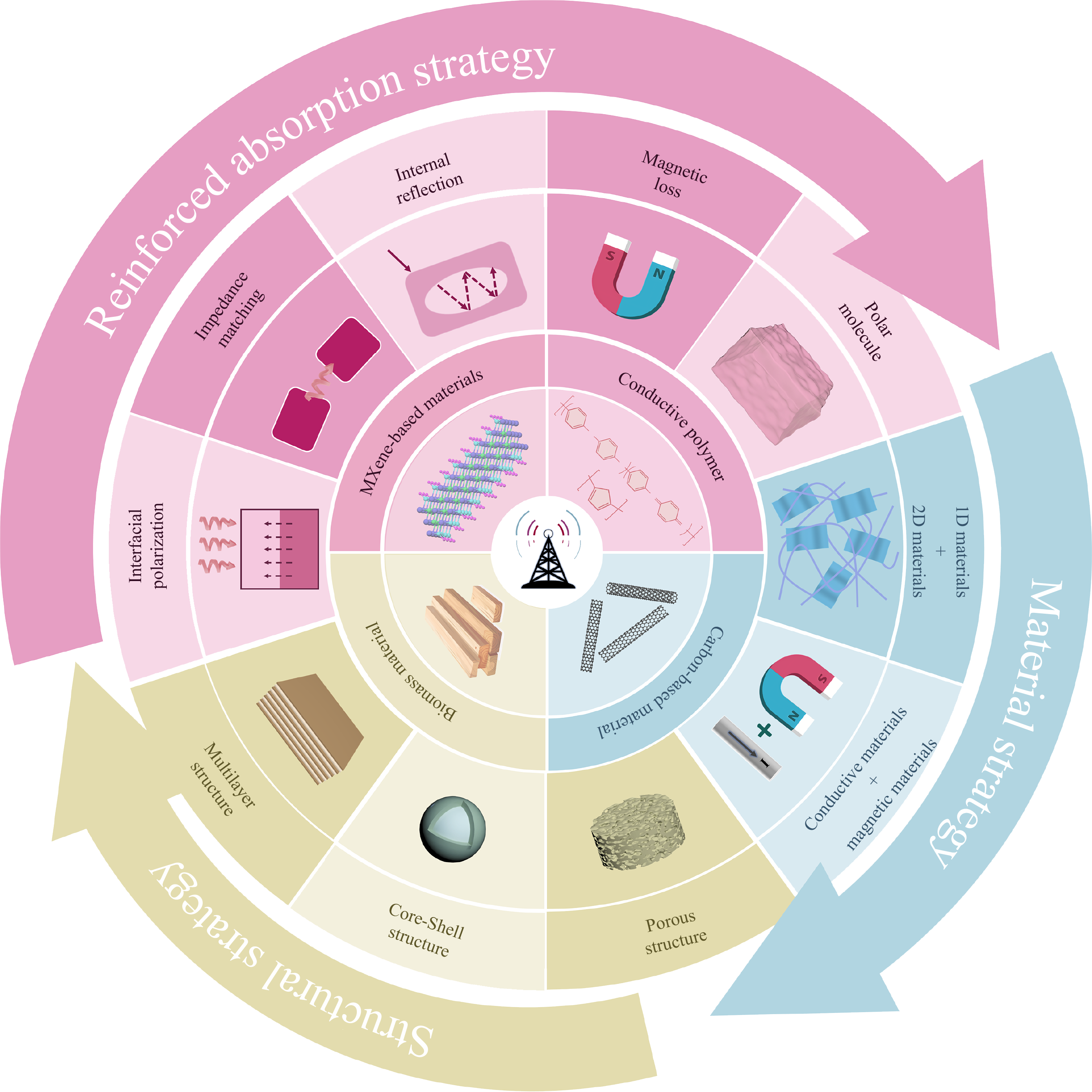 With the widespread application of 5G technology and the rapid development of electronic device miniaturization, electromagnetic radiation interference has become an increasingly critical concern. To meet the requirements of new-generation portable wearable electronic devices for electromagnetic interference shielding in terms of environmental friendliness, sustainability, lightweight, and high strength characteristics, novel shielding materials represented by carbon-based materials, MXene, and biomass materials, have emerged. To optimize the electromagnetic shielding composites for higher efficiency, researchers have proposed multifaceted strategies, including material design strategies (e.g., combinations of one-dimensional and two-dimensional materials or conductive and magnetic materials), structural design strategies (e.g., porous structures, multilayer structures, and core-shell structures), and reinforced absorption design strategies. This study provides a concise review of representative electromagnetic interference shielding raw materials, with a focus on the development status of novel biomass electromagnetic shielding materials represented by wood, lignin, and cellulose. The advantages and disadvantages of various electromagnetic shielding materials are systematically analyzed. For the first time, a summary of transdisciplinary multiscale design strategies is provided to promote the development of electromagnetic shielding techniques.