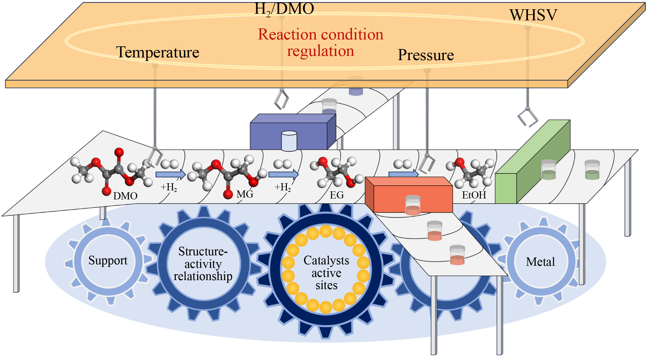 In recent years, energy crisis environmental problems have attracted more and more attention. Considering the shortage of oil resources and abundant coal resources in the earth’s crust, we need to find a feasible and efficient way in the coal chemical industry. Numerous studies have shown that dimethyl oxalate produced by gas-phase CO coupling reaction can be selectively hydrogenated to methyl glycolate and deeply hydrogenated to ethylene glycol and ethanol. This paper introduces the research progress of the catalyst in the stepwise conversion process of dimethyl oxalate hydrogenation. The research progress of active sites and structure-activity relationship of each catalyst was emphasized, and the active sites and reaction conditions of the three products were summarized. In addition, the direction of future catalyst design is suggested.