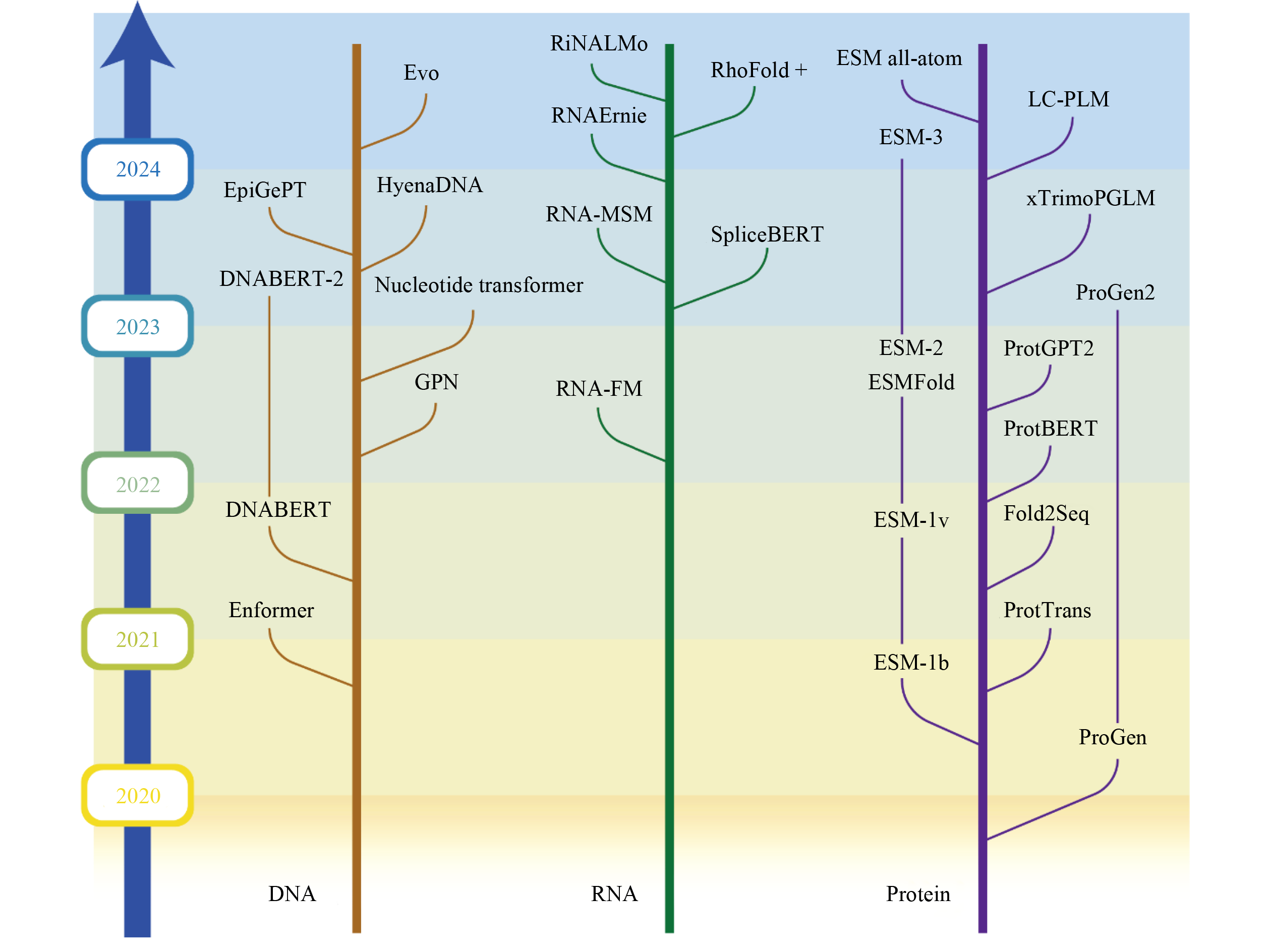 Large language models (LLMs) have transformed natural language processing with their improved performance compared with previous methods and have shown great potential to be adopted in other fields. The sequential nature of genomics data, such as deoxyribonucleic acid (DNA), ribonucleic acid (RNA), and proteins, makes it akin to human natural language, supporting the application of LLMs. Currently, LLMs have only been applied to genomic research for about four years but have already achieved significant advances in many challenging and important problems. This review summarizes the recent progress of applying LLMs in genomic research, including developing biological foundation models for protein, DNA, and RNA, as well as specialized models for interaction prediction, single-cell analysis, and structure prediction. The review discusses the challenges and potentials of adopting new advancements in LLMs for genomic applications and proposes several practical projects for integrating LLMs into genomics teaching and learning.