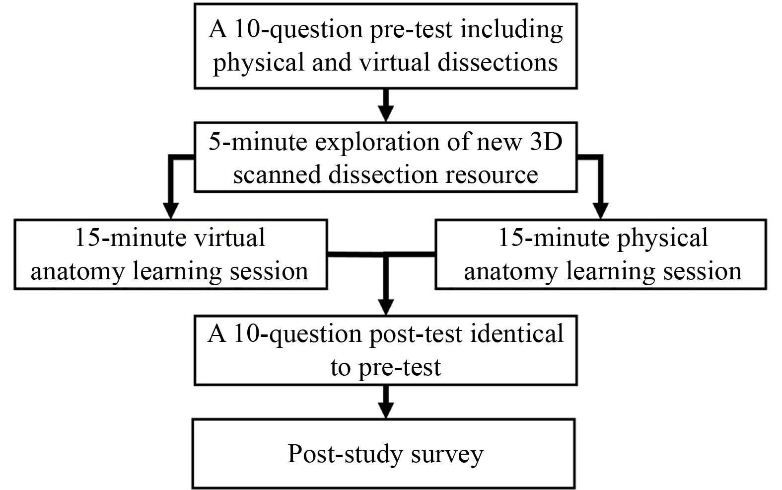 When incorporating new technology into medical curricula, it is essential to evaluate student success and resource preference. Our team created a database of virtual 3D scanned prosections for students to use while studying Gross Anatomy. Incoming first year medical students were recruited to take part in a study examining the effectiveness and preference for this resource. The study was conducted in four parts: first, a pre-test using physical prosections and images of virtual 3D scans of prosections; second, a teaching session using physical prosections or virtual 3D scans of prosections; third, a post-test identical to the pre-test; forth, a post-test survey. Twenty-nine students participated in this study (physical prosection teaching group [physical]= 15; virtual 3D scans teaching group [virtual] = 14). Exam scores significantly increased in both groups regardless of past anatomy experience with no significance found between groups (physical = 42.6% ± 17.9%; virtual = 44.3% ± 24.0%; P < 0.01). Students taught using the virtual 3D scans were more likely to agree that they “would be able to sufficiently learn anatomy using 3D scans” (physical = 3.0 ± 0.8; virtual = 4.1 ± 1.1; P < 0.01). Regardless of teaching group, students disagreed that they “would have a similar lab experience if they learned 3D scans instead of dissection” (physical = 2.1 ± 0.6; virtual = 2.5 ± 0.8), but agreed that they would use the virtual 3D scans to prepare for the dissection lab and practical/written exam (physical = 4.5 ± 0.8; virtual = 4.9 ± 0.3). This study demonstrates that virtual 3D scans are comparable to physical prosections in anatomy learning, but students do not support this resource replacing the dissection process.