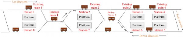 In large cities with heavily congested metro lines, unexpected disturbances often occur, which may cause severe delay of multiple trains, blockage of partial lines, and reduction of passenger service. Metro dispatchers have taken a practical strategy of rescheduling the timetable and adding several backup trains in storage tracks to alleviate waiting passengers from crowding the platforms and recover from such disruptions. In this study, we first develop a mixed integer programming model to determine the optimal train rescheduling plan with considerations of in-service and backup trains. The aim of train rescheduling is to frequently dispatch trains to evacuate delayed passengers after the disruption. Given the nonlinearity of the model, several linearization techniques are adapted to reformulate the model into an equivalent linear model that can be easily handled by the optimization software. Numerical experiments are implemented to verify the effectiveness of the proposed train rescheduling approach.