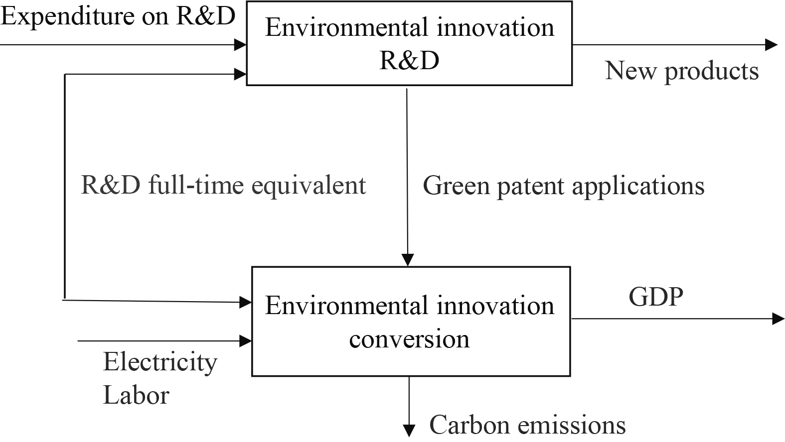 The term environmental innovation system refers to an innovation network composed of enterprises, universities, and research institutions involved in the development and diffusion of environmental technology, with the participation of a government. An environmental innovation system not only exerts important impact on the achievement of carbon neutrality but also affects social and economic activities. Investigations on environmental innovation system performance constantly assume a single-stage independent system while ignoring its internal structure. However, such systems are composed of environmental innovation research and development (R&D) and environmental innovation conversion subsystems. A two-stage data envelopment analysis (DEA) model is developed in this study to analyze the efficiency of Chinese regional environmental innovation system by opening the “black box” and considering shared resources. Empirical results indicated that China presents high overall environmental innovation efficiency although some regions need to improve. Regions with low efficiencies in both environmental innovation R&D (EIR) and environmental innovation conversion (EIC) subsystems should expand their investment in and strengthen the management of environmental innovation resources. Regions with low EIR efficiency should improve the absorption and transformation of environmental innovation achievements. Regions with low EIC efficiency should increase investment in the commercialization of environmental innovation achievements and encourage green economy industries, such as new energy, art, tourism, and environmental protection.