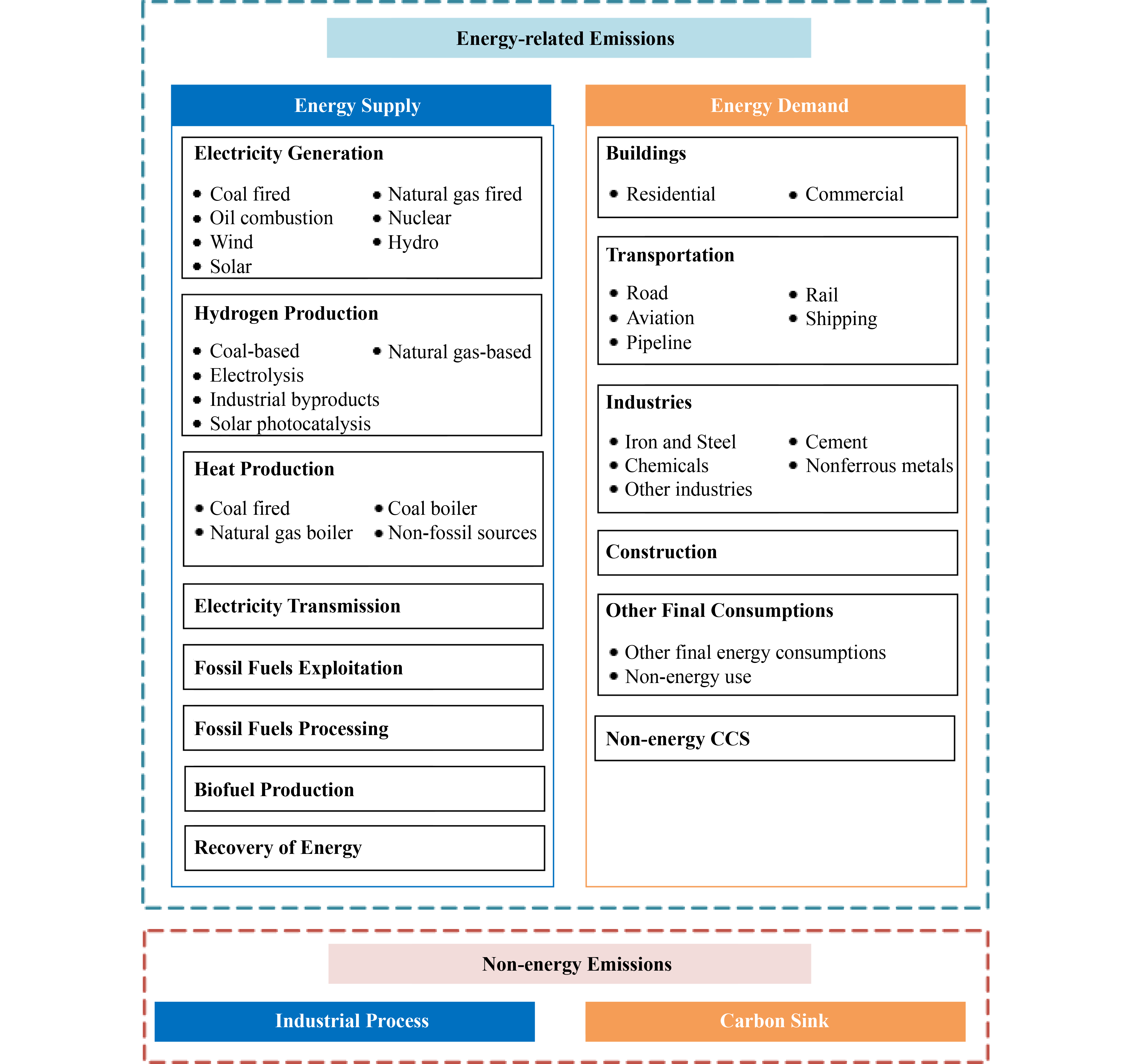 Achieving carbon neutrality in China before 2060 requires a radical energy transition. To identify the possible transition pathways of China’s energy system, this study presents a scenario-based assessment using the Low Emissions Analysis Platform (LEAP) model. China could peak the carbon dioxide (CO2) emissions before 2030 with current policies, while carbon neutrality entails a reduction of 7.8 Gt CO2 in emissions in 2060 and requires an energy system overhaul. The assessment of the relationship between the energy transition and energy return on investment (EROI) reveals that energy transition may decrease the EROI, which would trigger increased energy investment, energy demand, and emissions. Uncertainty analysis further shows that the slow renewable energy integration policies and carbon capture and storage (CCS) penetration pace could hinder the emission mitigation, and the possible fossil fuel shortage calls for a much rapid proliferation of wind and solar power. Results suggest a continuation of the current preferential policies for renewables and further research and development on deployment of CCS. The results also indicate the need for backup capacities to enhance the energy security during the transition.