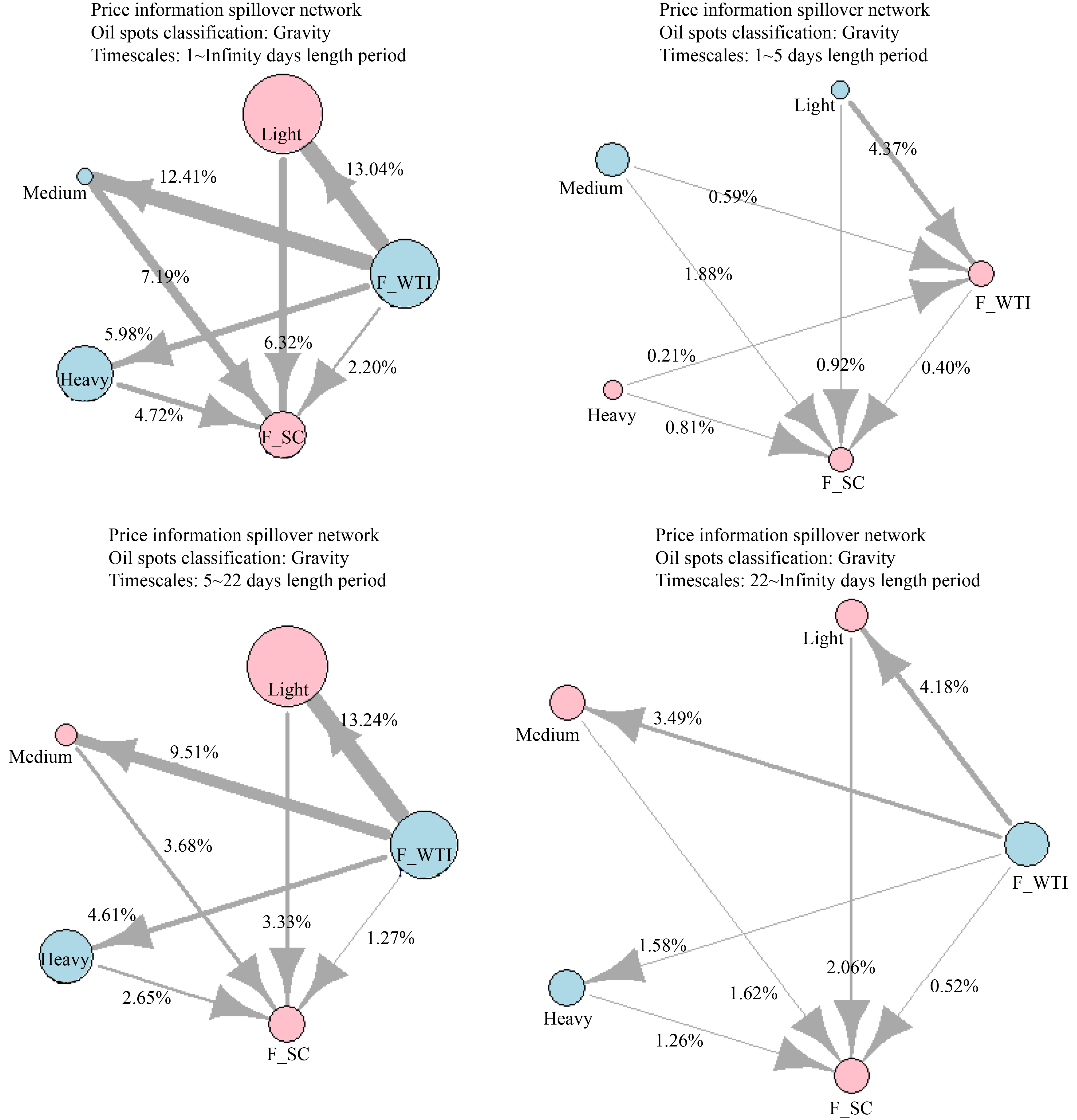 China is breaking through the petrodollar system, establishing RMB-dominating crude oil futures market. The country is achieving a milestone in its transition to energy finance market internationalization. This study explores the price leadership of China’s crude oil futures and identifies its price co-movement to uncover whether it truly shakes up the global oil spots market. First, we find that for oil spots under different gravities, China’s oil futures is only a net price information receiver from light-, medium-, and heavy-gravity oil spots, but it has a relatively stronger price co-movement with these three spots. Second, for oil spots under different sulfur contents, China’s oil futures still has weak price leadership in sweet, neutral, and sour oil spots, but it has strong co-movement with them. Third, for oil spots under different geographical origins, China’s oil futures shows price leadership in East Asian and Australian oil spots at the medium- and long-run time scales and strong price co-movement with East Asian, Middle Eastern, Latin American and Australian oil spots. China’s oil futures may not have good price leadership in global spots market, but it features favorable price co-movement.