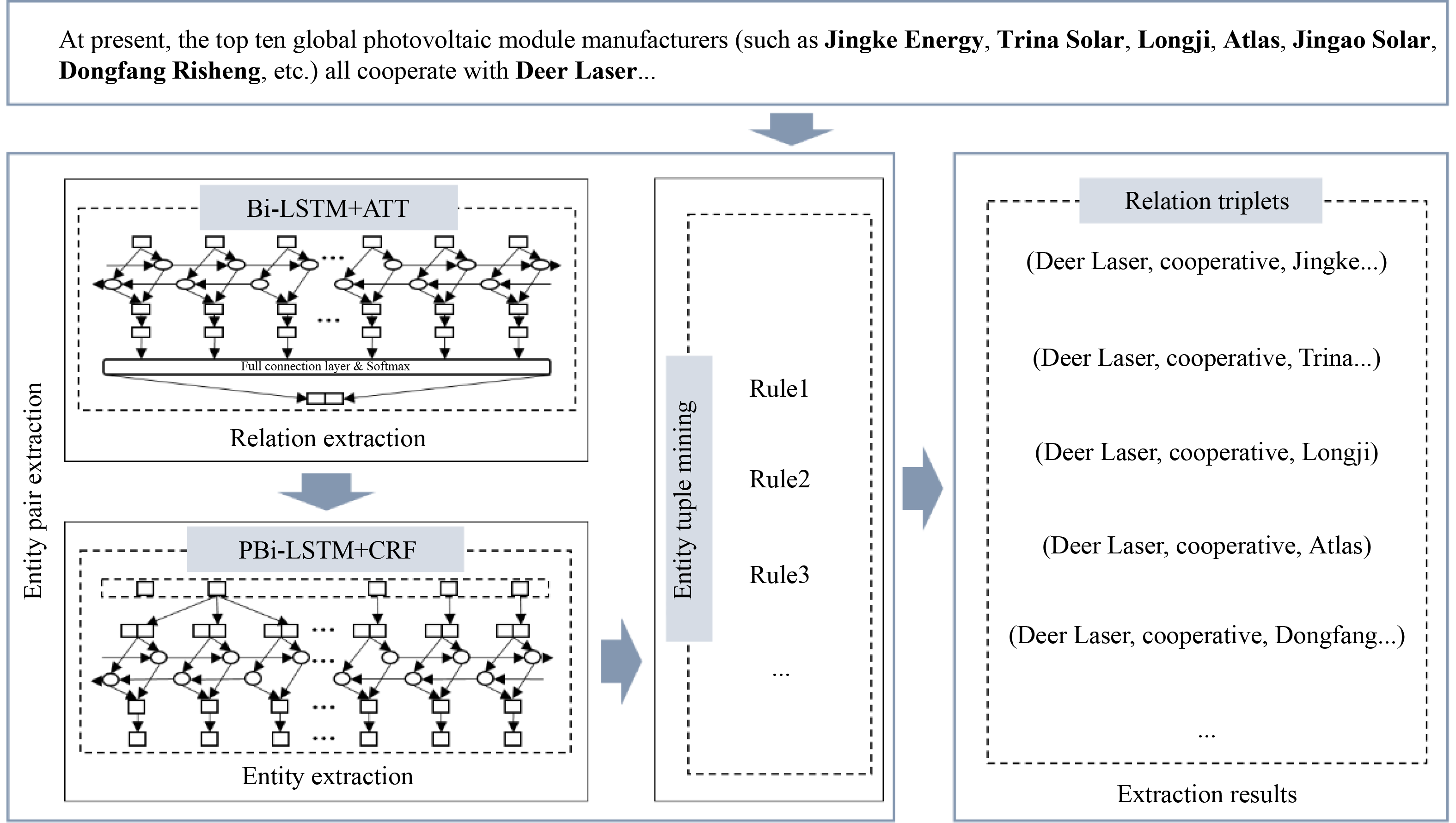 Entity and relation extraction is an indispensable part of domain knowledge graph construction, which can serve relevant knowledge needs in a specific domain, such as providing support for product research, sales, risk control, and domain hotspot analysis. The existing entity and relation extraction methods that depend on pretrained models have shown promising performance on open datasets. However, the performance of these methods degrades when they face domain-specific datasets. Entity extraction models treat characters as basic semantic units while ignoring known character dependency in specific domains. Relation extraction is based on the hypothesis that the relations hidden in sentences are unified, thereby neglecting that relations may be diverse in different entity tuples. To address the problems above, this paper first introduced prior knowledge composed of domain dictionaries to enhance characters’ dependence. Second, domain rules were built to eliminate noise in entity relations and promote potential entity relation extraction. Finally, experiments were designed to verify the effectiveness of our proposed methods. Experimental results on two domains, including laser industry and unmanned ship, showed the superiority of our methods. The F1 value on laser industry entity, unmanned ship entity, laser industry relation, and unmanned ship relation datasets is improved by +1%, +6%, +2%, and +1%, respectively. In addition, the extraction accuracy of entity relation triplet reaches 83% and 76% on laser industry entity pair and unmanned ship entity pair datasets, respectively.