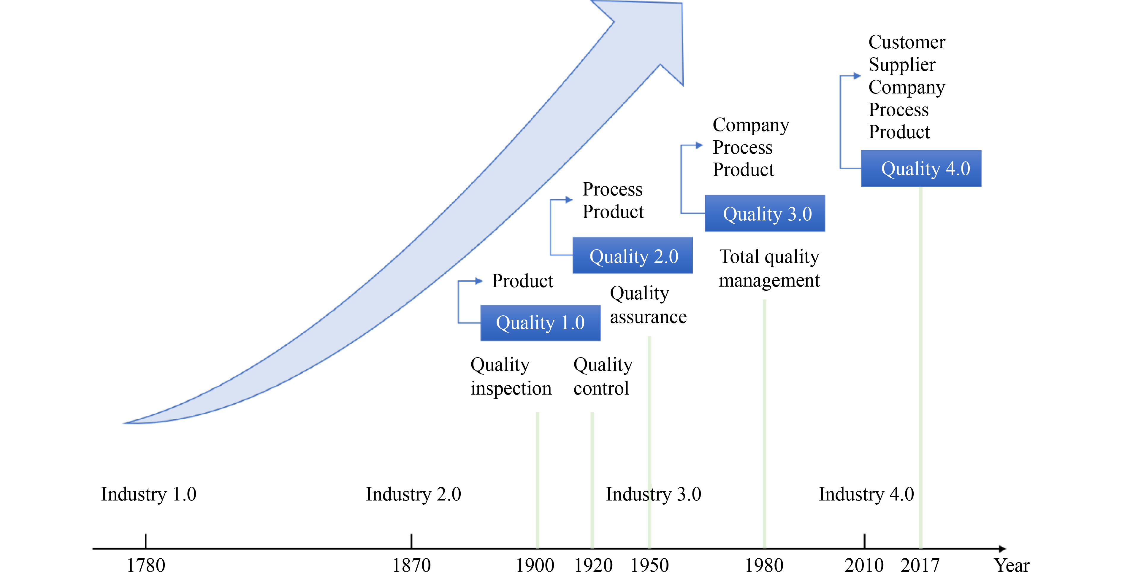 Quality 4.0 is an emerging concept that has been increasingly appreciated because of the intensification of competition, continually changing customer requirements and technological evolution. It deals with aligning quality management practices with the emergent capabilities of Industry 4.0 to improve cost, time, and efficiency and increase product quality. This article aims to comprehensively review extant studies related to Quality 4.0 to uncover current research trends, distil key research topics, and identify areas for future research. Thus, 46 journal articles extracted from the Scopus database from 2017 to 2022 were collected and reviewed. A descriptive analysis was first performed according to the year-wise publication, sources of publication, and research methods. Then, the selected articles were analyzed and classified according to four research themes: Quality 4.0 concept, Quality 4.0 implementation, quality management in Quality 4.0, and Quality 4.0 model and application. By extracting the literature review findings, we identify the Quality 4.0 definitions and features, develop the quality curve theory, and highlight future research opportunities. This study supports practitioners, managers, and academicians in effectively recognizing and applying Quality 4.0 to enhance customer satisfaction, achieve innovation enterprise efficiency, and increase organizational competitiveness in the era of Industry 4.0.