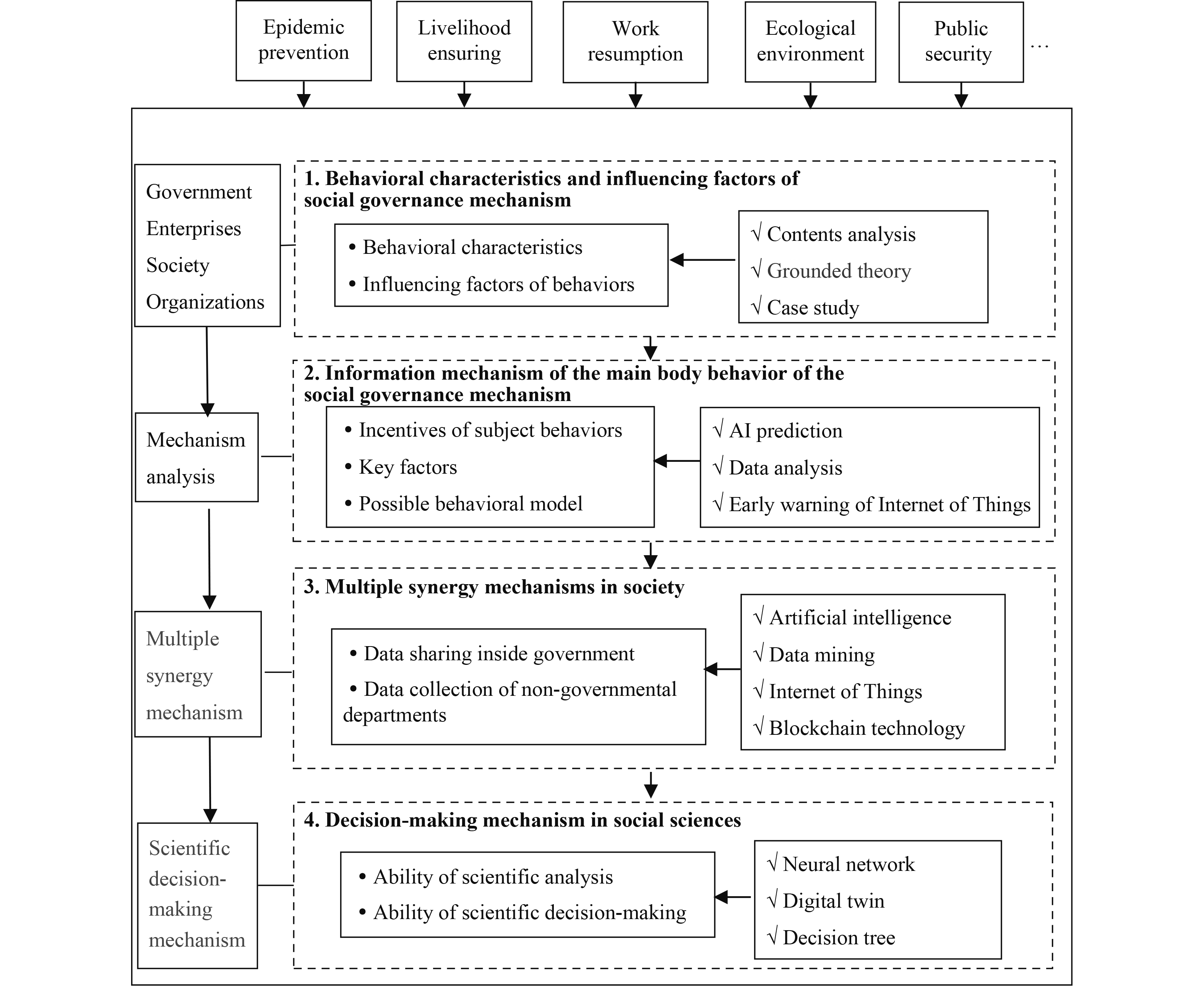 A smart society is an advanced form of society following agricultural society, industrial society, and information society, with digital data processing system as its main carrier. However, the governance of a smart society still faces many challenges. In view of this problem, first, this research constructs a smart society governance modernization strategy. Second, the innovation mode of a society governance mechanism driven by digital technology is proposed, including the precise intellectual control of a digital twin, the intelligent ubiquitous sensing of the Internet of Things, the empowerment remodeling of a blockchain and the livelihood service of artificial intelligence. Third, this study systematically explores the practice of smart society governance modernization from the aspects of basic information platform construction, evaluation system construction, application demonstration of epidemic prevention and control driven by big data, support of spatial intelligence and artificial intelligence technology for people’s livelihood, smart campus, public resources, and data governance application demonstration to provide theoretical guidance for promoting digital technology innovation in the process of the governance of a smart society.