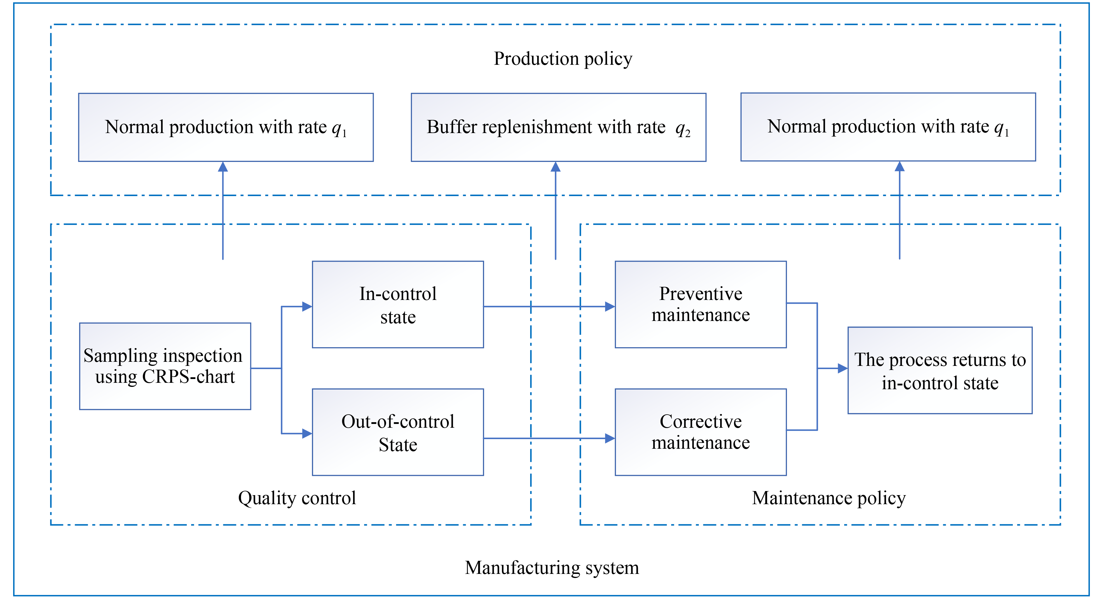 The joint optimization of production, maintenance, and quality control has shown effectiveness in reducing long-term operational costs in production systems. However, existing studies often assume that changes in the mean value of product quality characteristics in a deteriorating system follow a specific distribution while keeping variance constant. To address this limitation, we propose an innovative method based on the continuous ranking probability score (CRPS). This method enables the simultaneous detection of changes in mean and variance in nonconformities, thus removing the assumption of a specific distribution for quality characteristics. Our approach focuses on developing optimal strategies for production, maintenance, and quality control to minimize cost per unit of time. Additionally, we employ a stochastic model to optimize the production time allocated to the inventory buffer, resulting in significant cost reductions. The effectiveness of our proposed joint optimization method is demonstrated through comprehensive numerical experiments, sensitivity analysis, and a comparative study. The results show that our method can achieve cost reductions compared to several other related methods, highlighting its practical applicability for manufacturing companies aiming to reduce costs.