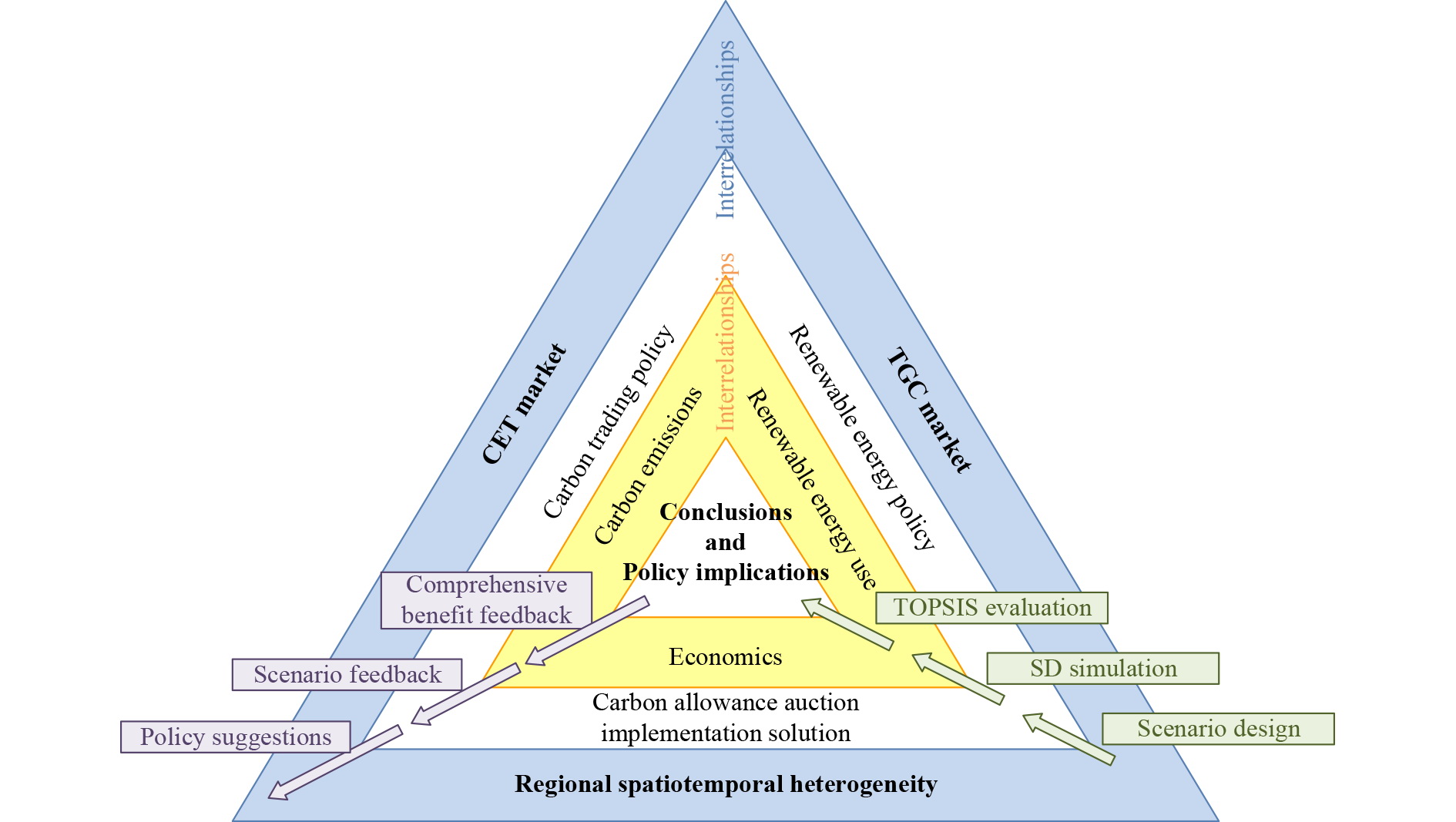 There is notable variability in carbon emission reduction efforts across different provinces in China, underscoring the need for effective strategies to implement carbon emission allowance auctions. These auctions, as opposed to free allocations, could be more aligned with the principle of “polluter pays.” Focusing on three diverse regions — Ningxia, Beijing, and Zhejiang — this study employs a system dynamics simulation model to explore markets for carbon emissions and green certificates trading. The aim is to determine the optimal timing and appropriate policy intensities for auction introduction. Key findings include: (1) Optimal auction strategies differ among the provinces, recommending immediate implementation in Beijing, followed by Ningxia and Zhejiang. (2) In Ningxia, there’s a potential for a 6.20% increase in GDP alongside a 21.59% reduction in carbon emissions, suggesting a feasible harmony between environmental and economic objectives. (3) Market-related policy variables, such as total carbon allowances and Renewable Portfolio Standards, significantly influence the optimal auction strategies but have minimal effect on carbon auction prices.