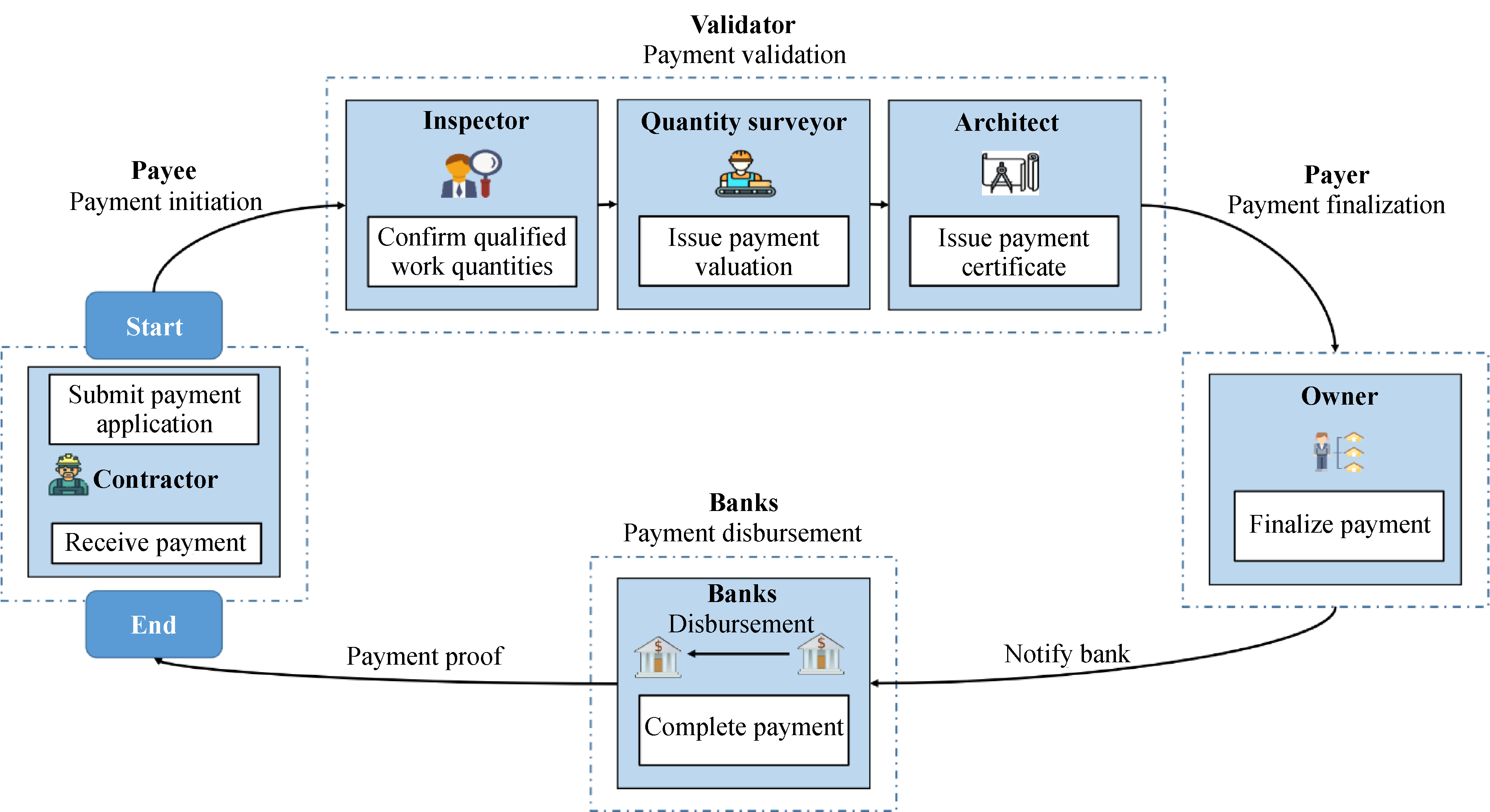 Late payment, and indeed no payment, is a rampant and chronic problem that has plagued the global construction industry for too long. Recent development in blockchain technology, particularly its smart contract, seems to provide a new opportunity to improve this old problem. However, this opportunity is largely unexploited. This study aims to develop a blockchain-based smart contract (BBSC) system for smart payment in the construction industry by focusing on the fundamental cycle of payment freezing (sometimes also synonymously called payment guarantees) and disbursement application. Firstly, a BBSC framework, containing three processes of (a) initiation and configuration, (b) payment freezing, and (c) disbursement application, is developed. Next, based on the framework, the system architecture of the BBSC system, containing three layers of (1) Infrastructure as a Service (IaaS), (2) Blockchain as a Service (BaaS), and (3) Software as a Service (SaaS) is proposed and elabora-ted. Finally, based on the system architecture, a BBSC prototype system is developed using a real-life modular construction project as a case study. It was found that the prototype system can improve the certainty and efficiency of the progress payment, thereby enabling smart payment in construction transactions. Without advocating radical changes (e.g., the contractual relationships or the intermediate role of banks in modern construction projects), the prototype can be developed into a real-life BBSC system that can work compatibly with current advancements in the field. Future works are recommended to fine-tune the findings and translate and implement them in real-life applications.