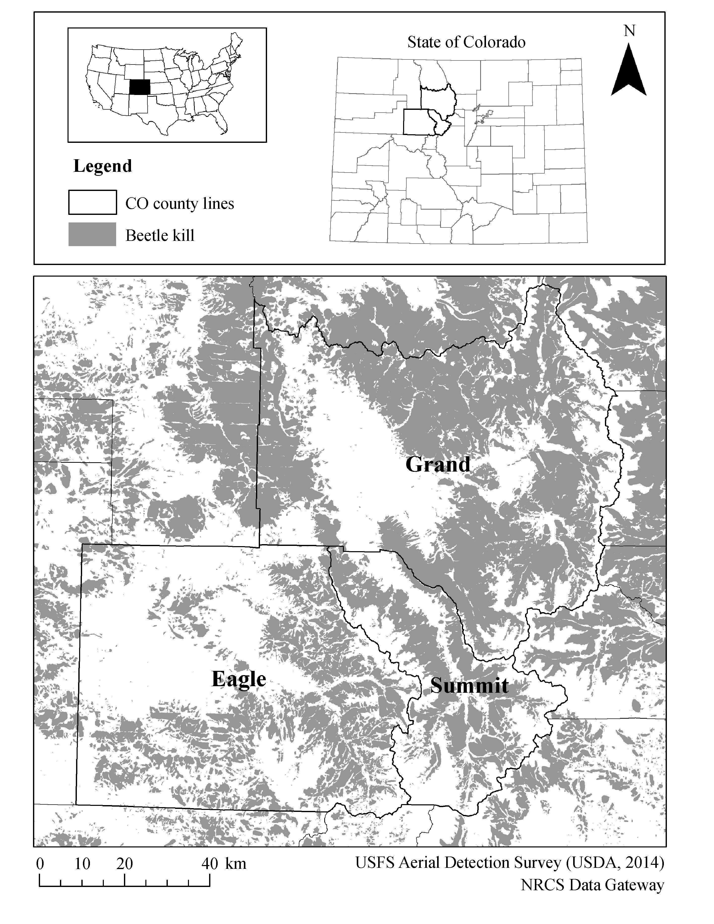 Natural or human-influenced disturbances are important to the health and diversity of forests, which in turn, are important to the water quantity and quality exported from a catchment. However, human-induced disturbances (prescribed fire and harvesting) have been decreasing, and natural disturbances (fires and insects) have been increasing in frequency and severity. One such natural disturbance is the mountain pine beetle (MPB), (Dendroctonus ponderosae) an endemic species. A recent epidemic resulted in the mortality of millions of hectares of lodgepole pine (Pinus contorta) forests in Colorado, USA. Beetle-induced tree mortality brings about changes to the hydrologic cycle, including decreased transpiration and interception with the loss of canopy cover. This study examined the effect of the mountain pine beetle kill on source water contributions to streamflow in snowmelt-dominated headwater catchments using stable isotopes (2H and 18O) as tracers. Study catchments with varying level of beetle-killed forest area (6% to 97%) were sampled for groundwater, surface water, and precipitation. Streams were sampled to assess whether beetle-killed forests have altered source water contributions to streamflow. Groundwater contributions increased with increasing beetle-killed forest area (p=0.008). Both rain and snow contributions were negatively correlated with beetle-killed forest area (p=0.035 and p=0.011, respectively). As the beetle-killed forest area increases, so does fractional groundwater contribution to streamflow.