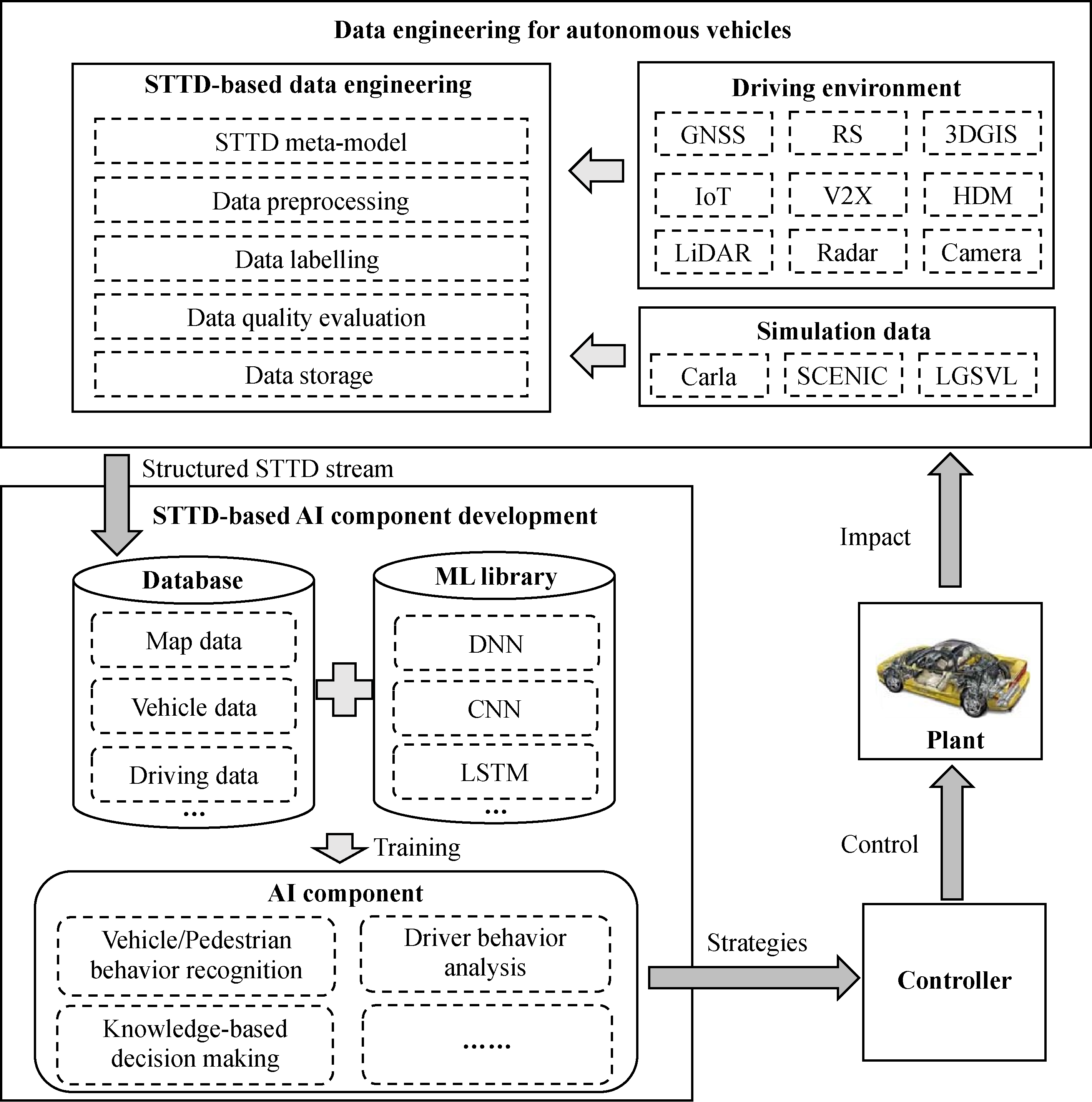 Nowadays, autonomous driving has been attracted widespread attention from academia and industry. As we all know, deep learning is effective and essential for the development of AI components of Autonomous Vehicles (AVs). However, it is challenging to adopt multi-source heterogenous data in deep learning. Therefore, we propose a novel data-driven approach for the delivery of high-quality Spatio-Temporal Trajectory Data (STTD) to AVs, which can be deployed to assist the development of AI components with deep learning. The novelty of our work is that the meta-model of STTD is constructed based on the domain knowledge of autonomous driving. Our approach, including collection, preprocessing, storage and modeling of STTD as well as the training of AI components, helps to process and utilize huge amount of STTD efficiently. To further demonstrate the usability of our approach, a case study of vehicle behavior prediction using Long Short-Term Memory (LSTM) networks is discussed. Experimental results show that our approach facilitates the training process of AI components with the STTD.