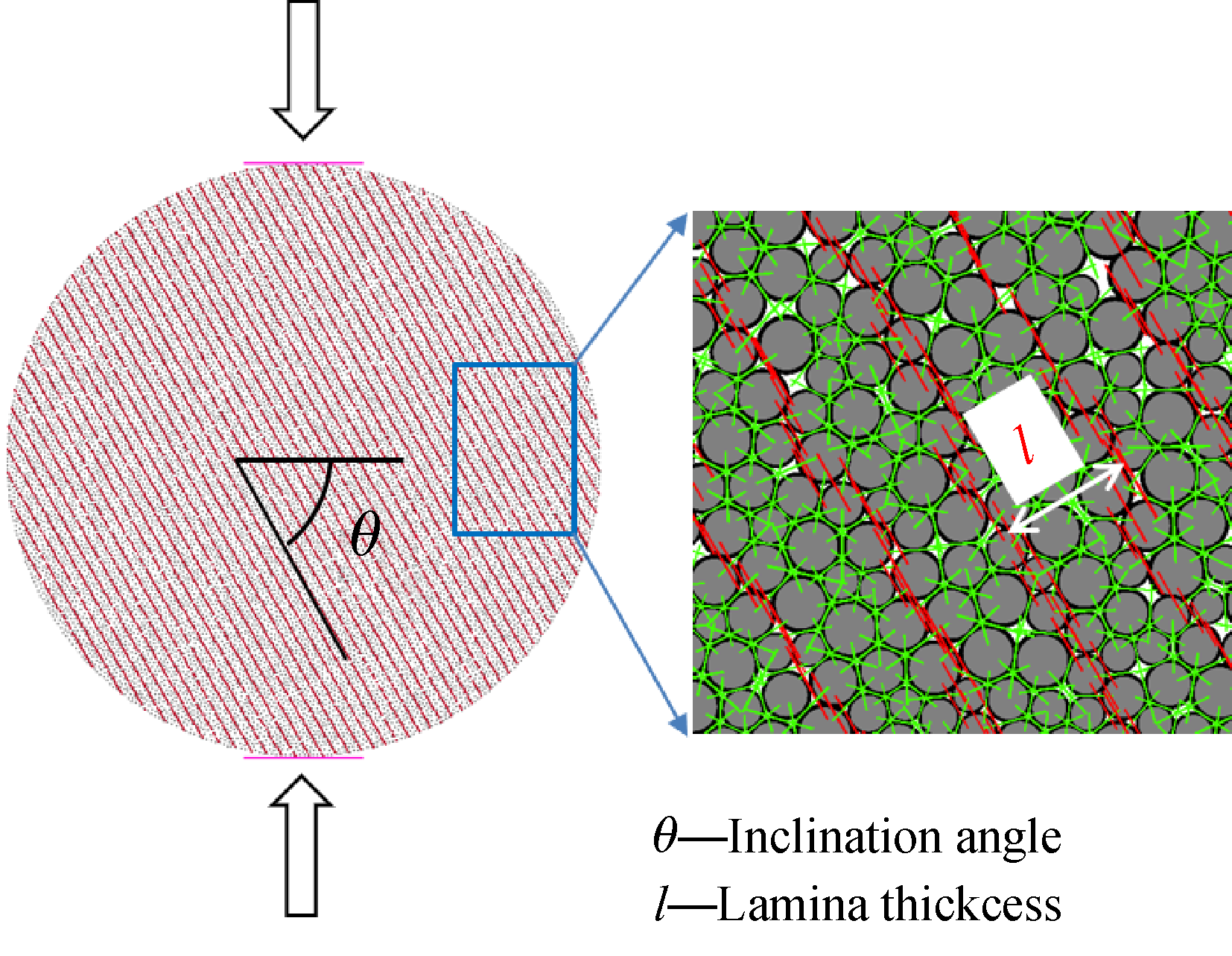 A validated particle flow code (PFC2D)-based model was developed to investigate the indirect tensile mechanical behavior of shale containing two central parallel cracks under Brazilian splitting test conditions. The results show that preexisting cracks have a significant and insignificant influence on the tensile strength of shale under LPL and LVL conditions, respectively. When L≥10 mm, changing the L and H values has little effect on the tensile strength of shale. However, the inclusion of preexisting cracks have a positive effect on reducing the anisotropy of the shale specimens, and in the case of an L/D ratio of 0.3, the shale anisotropy is the lowest. Four failure modes were formed at different β and θ values under LPL conditions. In the case of β≥60°, the failure mode is mainly affected by β, and when β≤45°, the failure mode is more complicated than in the case of β≥60°. Only three major failure modes were observed under LVL conditions; in the case of 45°≤β≤75° and θ≤30°, the most complex failure mode occurred.