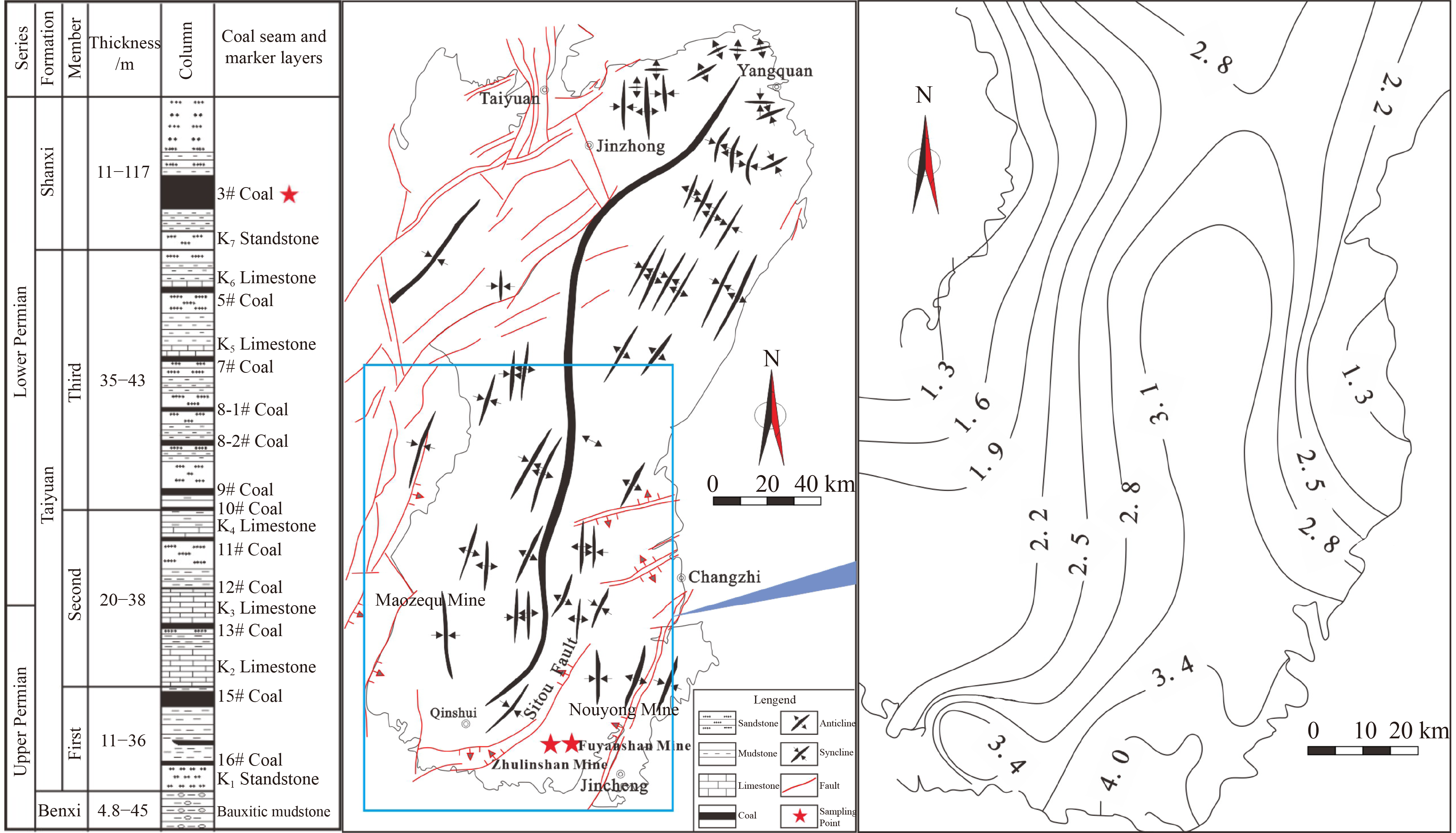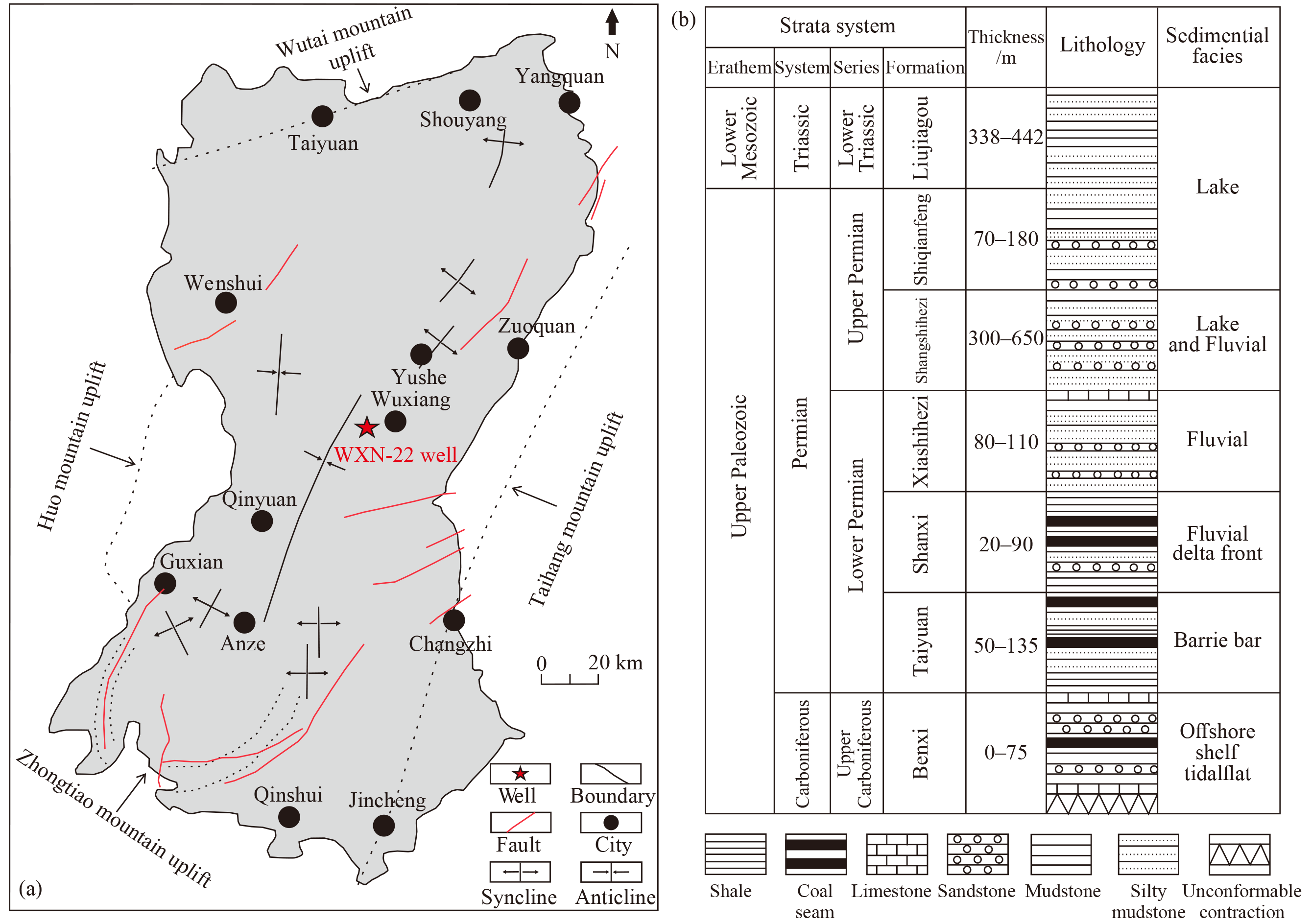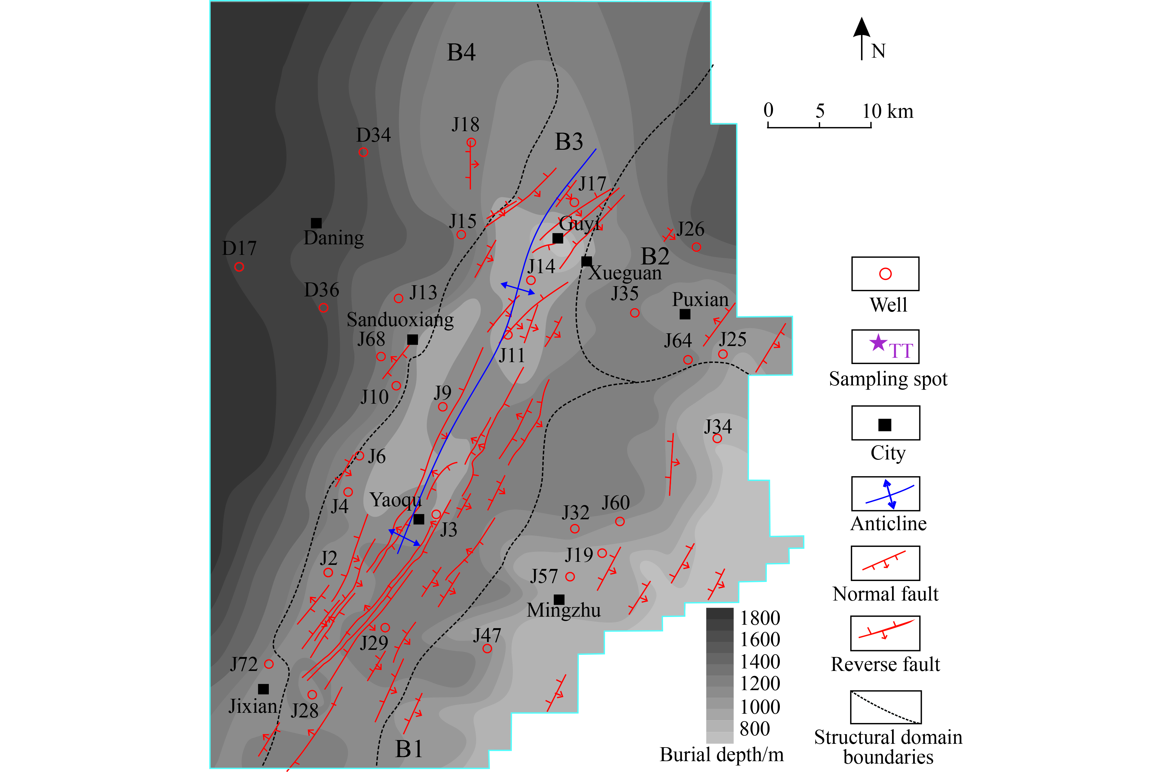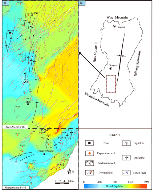 Commercial exploration and development of deep buried coalbed methane (CBM) in Daning-Jixian Block, eastern margin of Ordos Basin, have rapidly increased in recent decades. Gas content, saturation and well productivity show significant heterogeneity in this area. To better understand the geological controlling mechanism on gas distribution heterogeneity, the burial history, hydrocarbon generation history and tectonic evolution history were studied by numerical simulation and experimental simulation, which could provide guidance for further development of CBM in this area. The burial history of coal reservoir can be classified into six stages, i.e., shallowly buried stage, deeply burial stage, uplifting stage, short-term tectonic subsidence stage, large-scale uplifting stage, sustaining uplifting and structural inversion stage. The organic matter in coal reservoir experienced twice hydrocarbon generation. Primary and secondary hydrocarbon generation processes were formed by the Early and Middle Triassic plutonic metamorphism and Early Cretaceous regional magmatic thermal metamorphism, respectively. Five critical tectonic events of the Indosinian, Yanshanian and Himalayan orogenies affect different stages of the CBM reservoir accumulation process. The Indosinian orogeny mainly controls the primary CBM generation. The Yanshanian Orogeny dominates the second gas generation and migration processes. The Himalayan orogeny mainly affects the gas dissipation process and current CBM distribution heterogeneity.