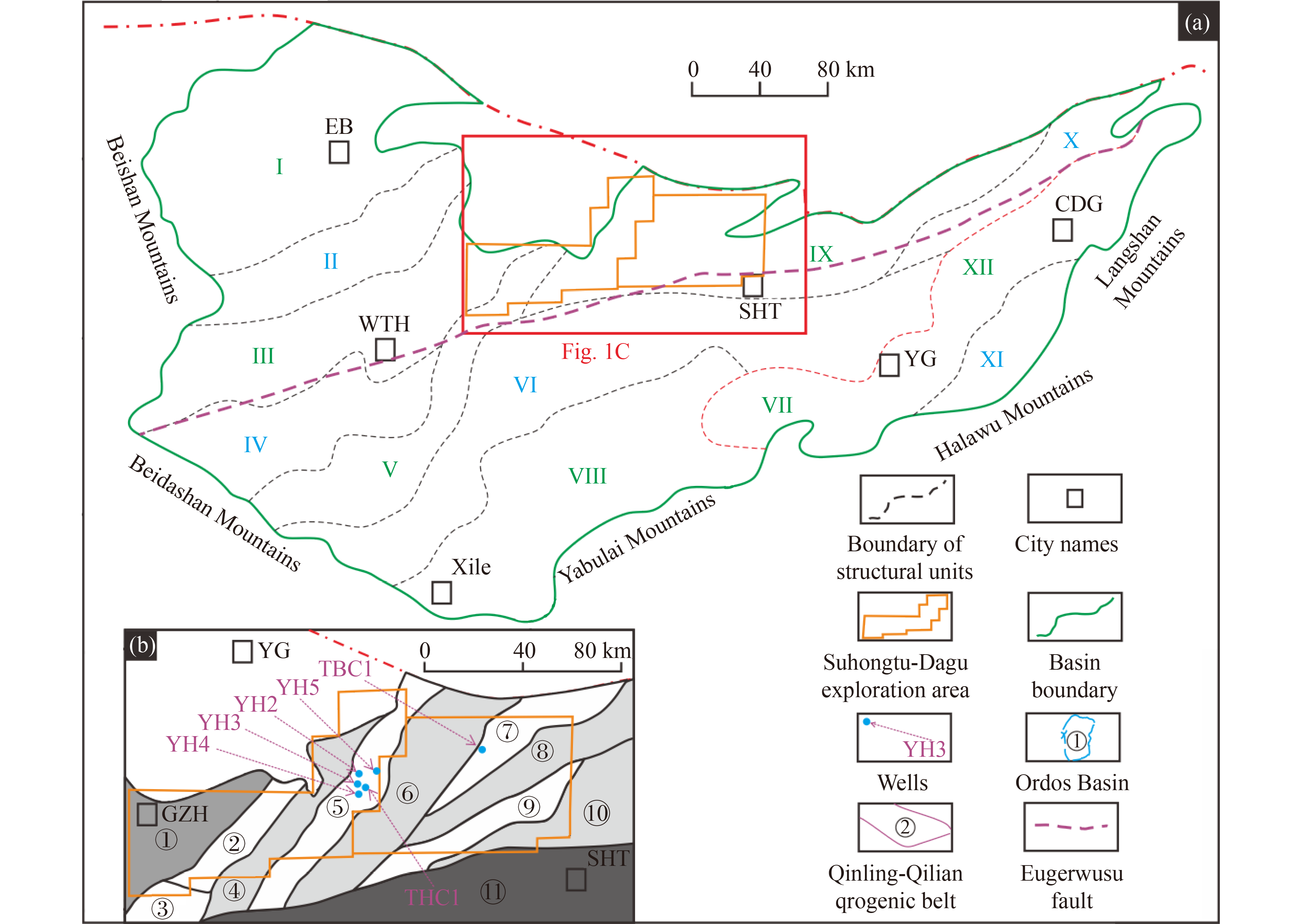 Research on the characteristics of faults and their evolutionary history since the Cretaceous in the Suhongtu-Dagu depressions can provide a theoretical basis for geological evaluation of the coal seams in the Suhongtu Formation in the northern-central region of the Yin’e Basin. Using 3-D seismic-logging inversion techniques, seismic stratigraphic calibration, stratigraphic sequence delineation, and thickness calculations on the Suhongtu-Dagu depressions were carried out to clarify the planar and profile distributions of the faults, as well as the evolutionary history of these faults and the tectonic history of the depressions. The results of this study revealed that the distribution of the faults in the Suhongtu-Dagu depressions in the northern part of the Yin’e Basin varies with region, and the fault system was multi-period, orthotropic, north-east-trending, and north-north-east-trending, with a certain degree of inheritance in terms of the geological setting. Three types of faults were identified: Y-shaped fractures, reverse Y-shaped fractures, and parallel fractures, which can be classified as Paleozoic-Cenozoic continuous syncline faults and intra-depression faults from the top of the Permian to the Upper Cretaceous series and inter-stratigraphic adjustment faults within the Cretaceous System, respectively. The evolution of these faults can be divided into three phases: the controlling faults were the faults that existed before the Early Cretaceous and had been active since then; synclinal faults that formed during the Early Cretaceous; and modified faults that formed since the Early Cretaceous. The development and modification of the coal seams in the Cretaceous Suhongtu Formation in the Hari, Kuanzihu, and Babei sags were strongly controlled and influenced by a multi-phase complex fault system.