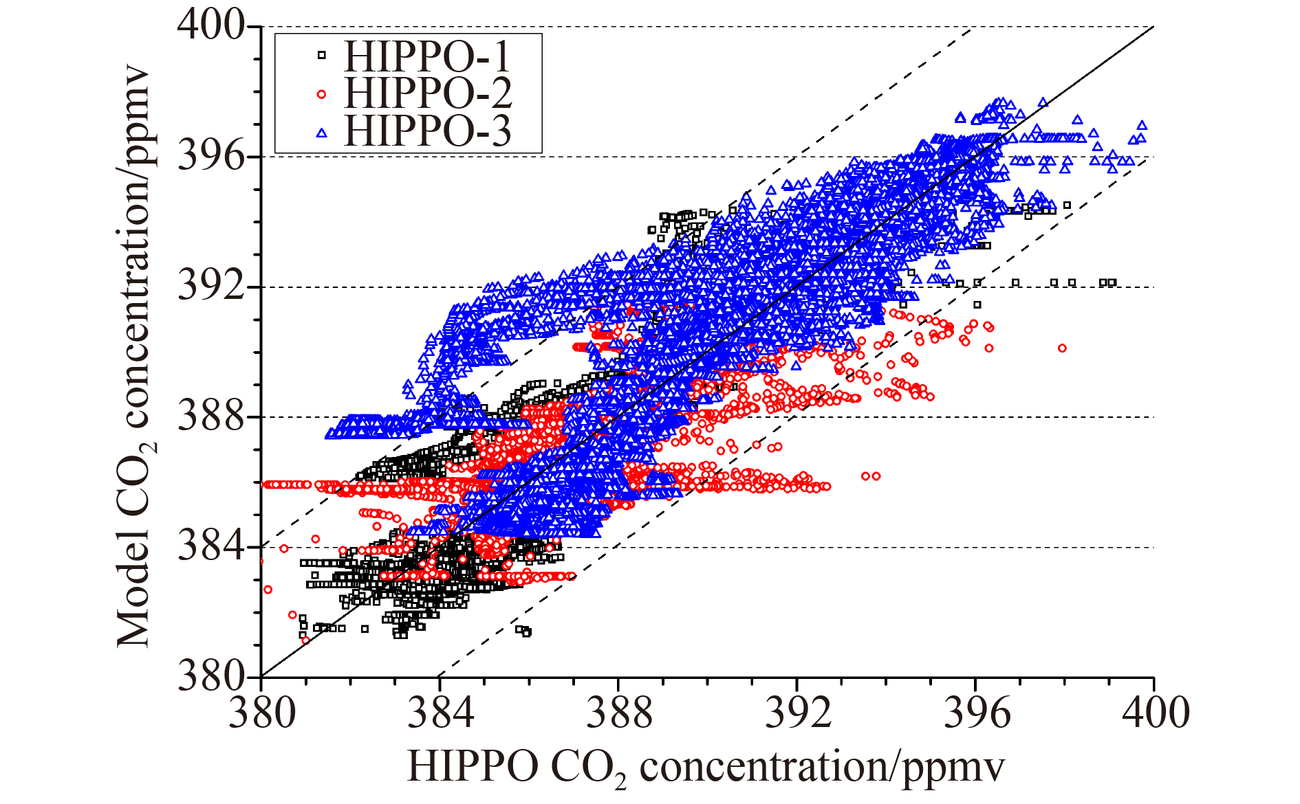 We present a study on validation of the National Institute for Environmental Studies Transport Model (NIES TM) by comparing to observed vertical profiles of atmospheric CO2. The model uses a hybrid sigma-isentropic (σ–θ) vertical coordinate that employs both terrain-following and isentropic parts switched smoothly in the stratosphere. The model transport is driven by reanalyzed meteorological fields and designed to simulate seasonal and diurnal cycles, synoptic variations, and spatial distributions of atmospheric chemical constituents in the troposphere. The model simulations were run for combination of biosphere, fossil fuel, air-ocean exchange, biomass burning and inverse correction fluxes of carbon dioxide (CO2) by GOSAT Level 4 product. We compared the NIES TM simulated fluxes with data from the HIAPER Pole-to-Pole Observations (HIPPO) Merged 10-s Meteorology, Atmospheric Chemistry, and Aerosol Data, including HIPPO-1, HIPPO-2 and HIPPO-3 from 128.0°E to 84.0°W, and 87.0°N to 67.2°S. The simulation results were compared with CO2 observations made in January and November, 2009, and March and April, 2010. The analysis attests that the model is sufficient to simulate vertical profiles with errors within 1–2 ppmv, except for the lower stratosphere in the Northern hemisphere high latitudes.