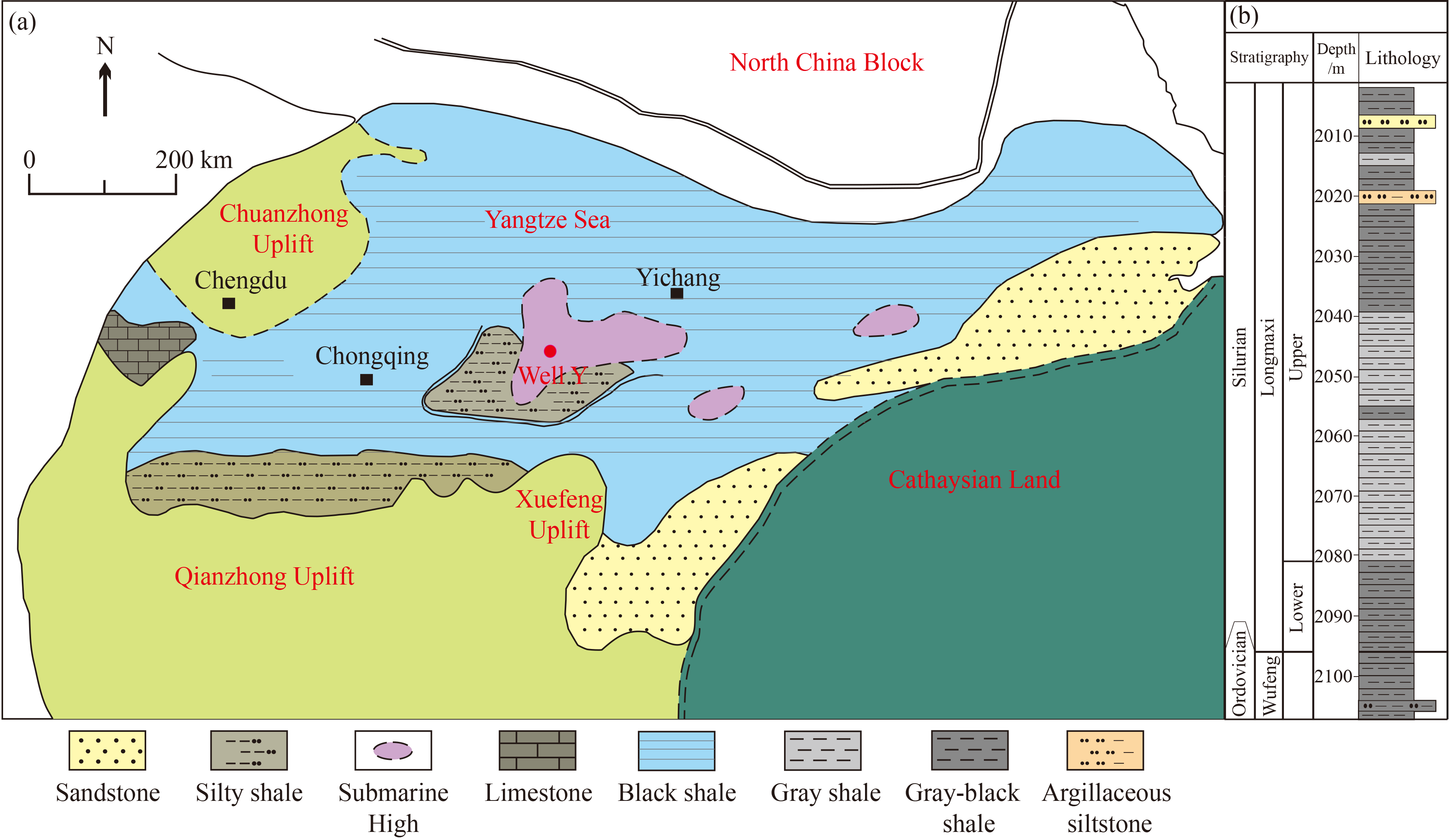 Trace elements and rare earth elements (REEs) of two kinds of organic facies samples representing marginal and more basin-center deposits from Pleistocene lacustrine mudstones in the central Qaidam Basin were studied to understand the provenance, palaeotectonic setting, hydrothermal activity, palaeoredox conditions and sedimentary rate. The results show that the lacustrine mudstones were mainly derived from felsic sources with little contribution from ancient crustal sediments and no ultramafic (ophiolitic) source. The mudstones were deposited in a continental island arc tectonic setting, which is consistent with the tectonic evolution of the Cenozoic basin. Both two organic facies samples were hydrothermal in origin based on the ternary diagram of Ni–Zn–Co and normalized REE patterns. However, this does not mean that the water column in paleolake was affected by hydrothermal fluids in situ. This signal might indicate hydrothermal origins from hot springs related to active faults around the basin rather than the deep hydrothermal fluids entering the sediments via deep faculties based on the comprehensive analyses of normalized REE patterns, negative Euanom (Eu anomaly), Y/Ho, Sm/Yb, and Eu/Sm. Redox proxies including U/Th, Ni/Co, and Mnanom values, are more sensitive for the studied samples indicating that most of the organic facies A samples were deposited under an oxygen-depleted condition, while the organic facies B samples were deposited under oxygen-rich conditions. Redox proxies of Ceanom values are unavailable for the organic facies B samples due to hypersaline environments, and V/Cr and V/(V + Ni) are invalid for the organic facies A samples, possibly because of their organism composition. The low Lan/Ybn values indicate high sedimentation rates, which is consistent with the average sedimentation rates of approximately 0.43 to 1.1 km/Ma. However, the Lan/Ybn is more likely affected by the provenance of the studied samples, so it should be used with caution.