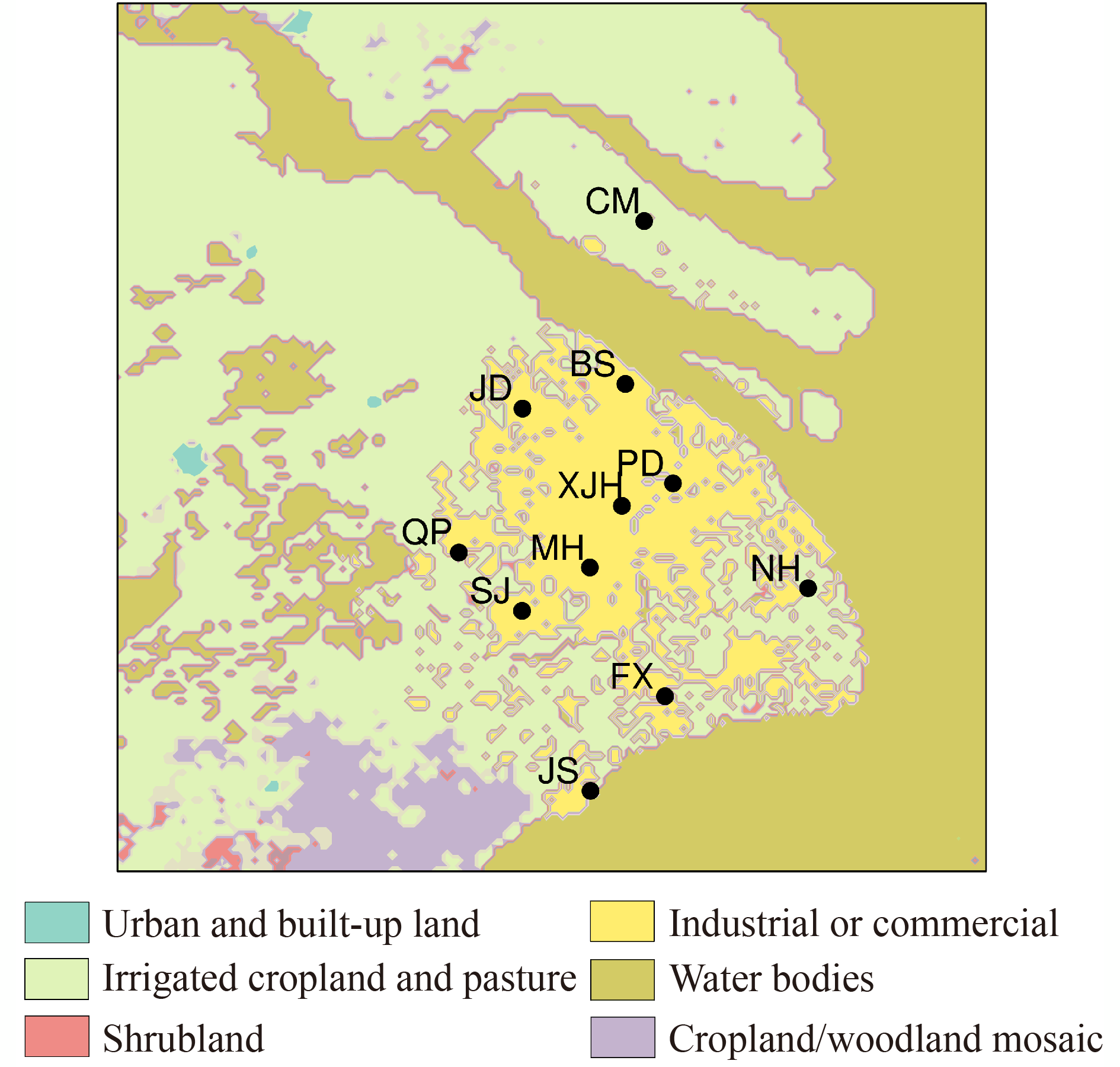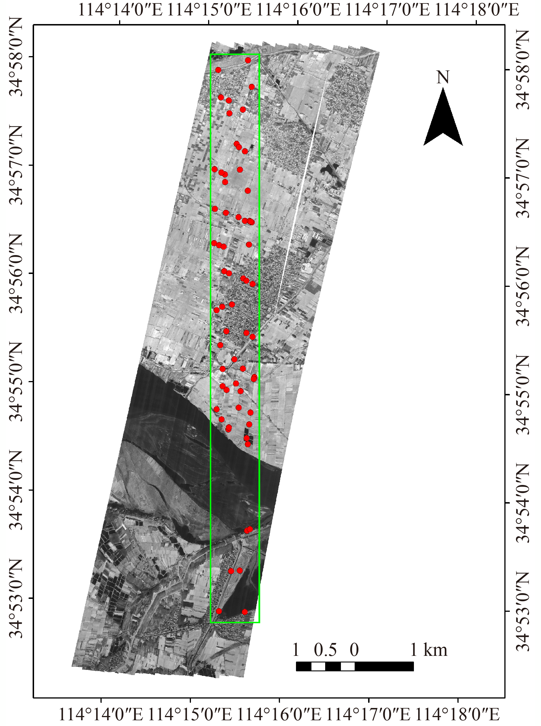 The Large Field of View Airborne Infrared Scanner is a newly developed multi-spectral instrument that collects images from the near-infrared to long-wave infrared channels. Its data can be used for land surface temperature (LST) retrieval and environmental monitoring. Before data application, quality assessment is an essential procedure for a new instrument. In this paper, based on the data collected by the scanner near the Yellow River in Henan Province, the geometric and radiometric qualities of the images are first evaluated. The absolute geolocation accuracy of the ten bands of the scanner is approximately 5.1 m. The ground sampling distance is found to be varied with the whisk angles of the scanner and the spatial resolution of the images. The band-to-band registration accuracy between band one and the other nine bands is approximately 0.25 m. The length and angle deformations of the ten bands are approximately 0.67% and 0.3°, respectively. The signal-to-noise ratio (SNR) and relative radiometric calibration accuracy of bands 4, 9, and 10 are relatively better than those of the other bands. Secondly, the radiative transfer equation (RTE) method is used to retrieve the LST from the data of the scanner. Measurements of in situ samples are collected to evaluate the retrieved LST. Neglecting the samples with unreasonable retrieved LST, the bias and RMSE between in situ LST measured by CE312 radiometer and retrieved LST are −0.22 K and 0.94 K, and the bias and RMSE are 0.27 K and 1.59 K for the InfReC R500-D thermal imager, respectively. Overall, the images of the Large Field of View Airborne Infrared Scanner yield a relatively satisfactory accuracy for both LST retrieval and geometric and radiometric qualities.