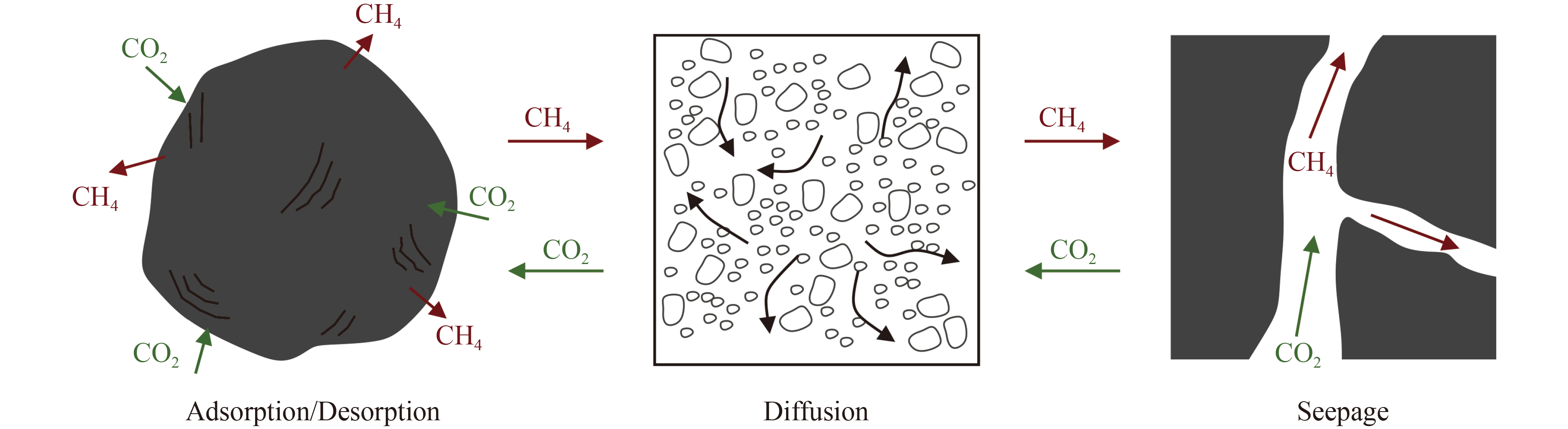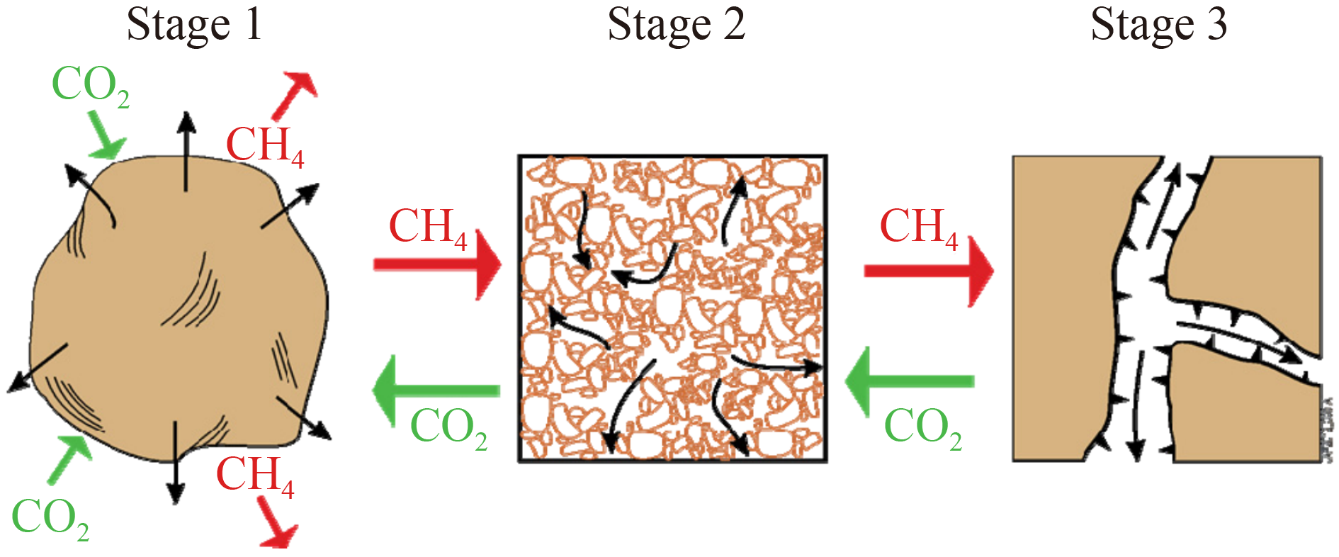The permeability and its horizontal anisotropy induce a critical influence on staged CH4 output inhibition process. However, a quantitative evaluation of this influence has been rarely reported in the literature. In this work, the impact of horizontal anisotropic permeability on CO2-ECBM was numerically investigated. The variation in the staged CH4 output inhibition was analyzed. The ideal displacement profile of the CO2-ECBM process was established for the first time. Moreover, the variation in CH4 output of different wellbores was discussed. The results showed that 1) low-permeable or weak-anisotropic reservoirs were not conducive to enhanced CH4 recovery owing to long inhibition time (> 1091 days) and high inhibition level (> 36.9%). As permeability and anisotropy increased, due to the accelerated seepage of free water, the hysteresis time and inhibition time could decrease to as short as 5 days and 87 days, respectively, and the inhibition level could weaken to as low as 5.00%. Additionally, the CH4 output and CO2 injection could increase significantly. 2) Nevertheless, high permeability and strong anisotropy easily induced CO2 breakthrough, resulting in lower CH4 production, CO2 injection and CO2 storage than expected. While maintaining high efficiency of CO2 storage (> 99%), upregulating CO2 breakthrough concentration from 10% to 20% might ease the unfavorable trend. 3) Along the direction of fluid flow, the ideal displacement profile consisted of CO2 enriched bank, CO2 and CH4 mixed bank, CH4 enriched bank, and water enriched bank, whereas a remarkable gap in the displacement profiles of the dominant and non-dominant seepage directions was observed. 4) The potential of CH4 output might vary greatly among different wellbores. The producers along the dominant seepage direction held more potential for CH4 recovery in the short-term, while those along the non-dominant seepage direction avoided becoming invalid only if a long-time injection measure was taken for the injectors. These findings pave the way to understand fluid seepage in real complex reservoirs during CO2-ECBM and conduct further field projects.