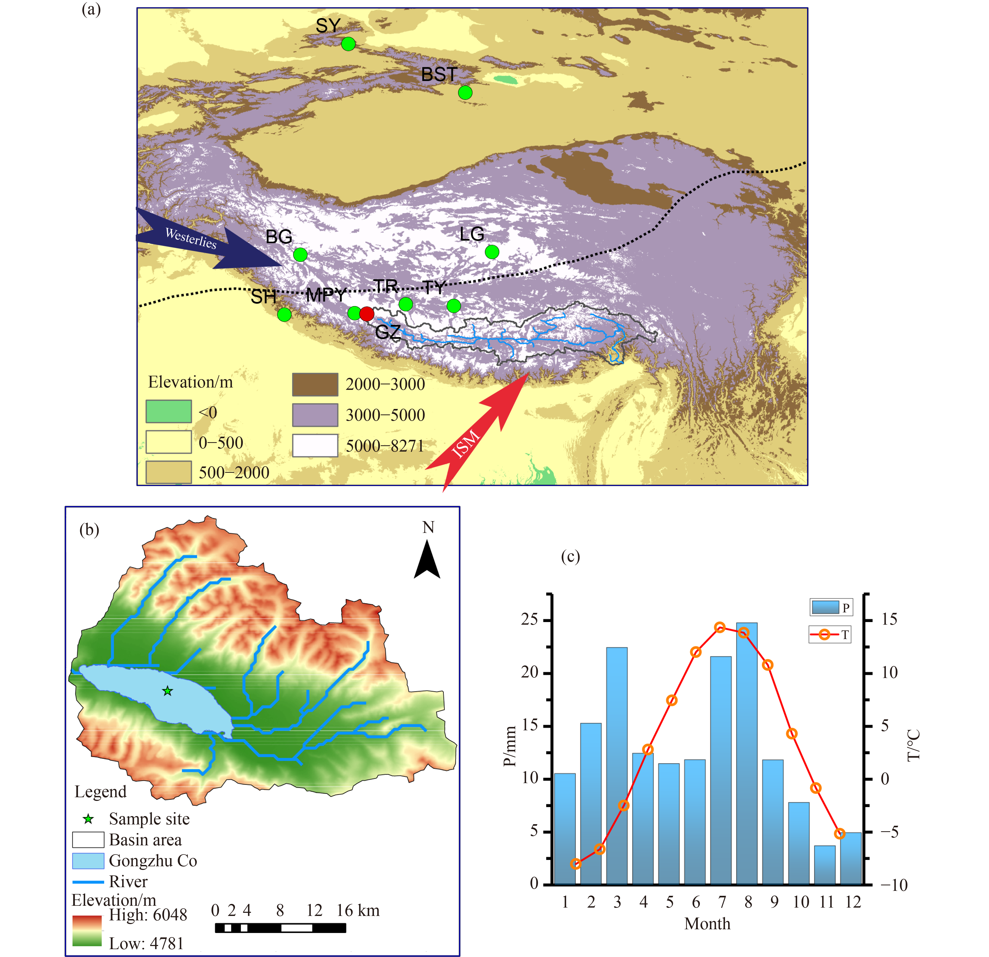 The Yarlung Tsangpo, the longest river in the southern Tibetan Plateau (TP), has attracted much research attention aimed at understanding the factors controlling its modern hydrology and possible future discharge in the context of ongoing climate change. However, partly due to the complex regional climatic background, no consistent conclusions have been reached, especially for its upper reaches. Paleohydrological reconstructions of the source region of the Yarlung Tsangpo can potentially improve our understanding of the history of humidity and its response to climatic variability. In this study, we used a 97 cm gravity core from Gongzhu Co to reconstruct the hydrology change during the late Holocene. The core was dated using AMS 14C and Pb/Cs methods, and we used measurements of element contents (determined by high-resolution XRF scanning), grain size, IC/TOC, and magnetic susceptibility to reconstruct hydroclimatic changes in the source of the Yarlung Tsangpo watershed since ~4000 yr ago. Combined with a modern meteorological data set, we found that PC1 of the XRF data, the Ca/(Fe + Ti) ratio, and EM1 of the grain size data were indicative of changes in humidity. Our records demonstrate a wet interval during ~4–1.7 ka BP (ka = 1000 yr, BP represents years before 1950 AD), followed by a dry period during since ~1 ka BP. Comparison with independent regional paleoclimatic records revealed shifts in the dominant factors controlling humidity. The wet interval during ~4–1.7 ka BP was coeval with a strengthened Westerlies, implying a dominant moisture supply from northern high latitudes. However, the extremely low values of Ca/(Fe + Ti) ratio during ~4–2.5 ka BP indicate potential glacial freshwater source, which is corroborated by the concurrent high magnetic susceptibility values and increased grain size. The rapid drying trend during ~1.7–1 ka BP suggests a switch in moisture supply from the Westerlies to the Indian Summer Monsoon (ISM). We attribute the drought conditions after ~1 ka BP to a weakened ISM, although a Westerlies influence and the potential effect of high temperatures on evaporation cannot be excluded. We suggest that future hydroclimatic research in this region should attempt to distinguish the individual moisture contributions of the ISM and the Westerlies during the last millennium.