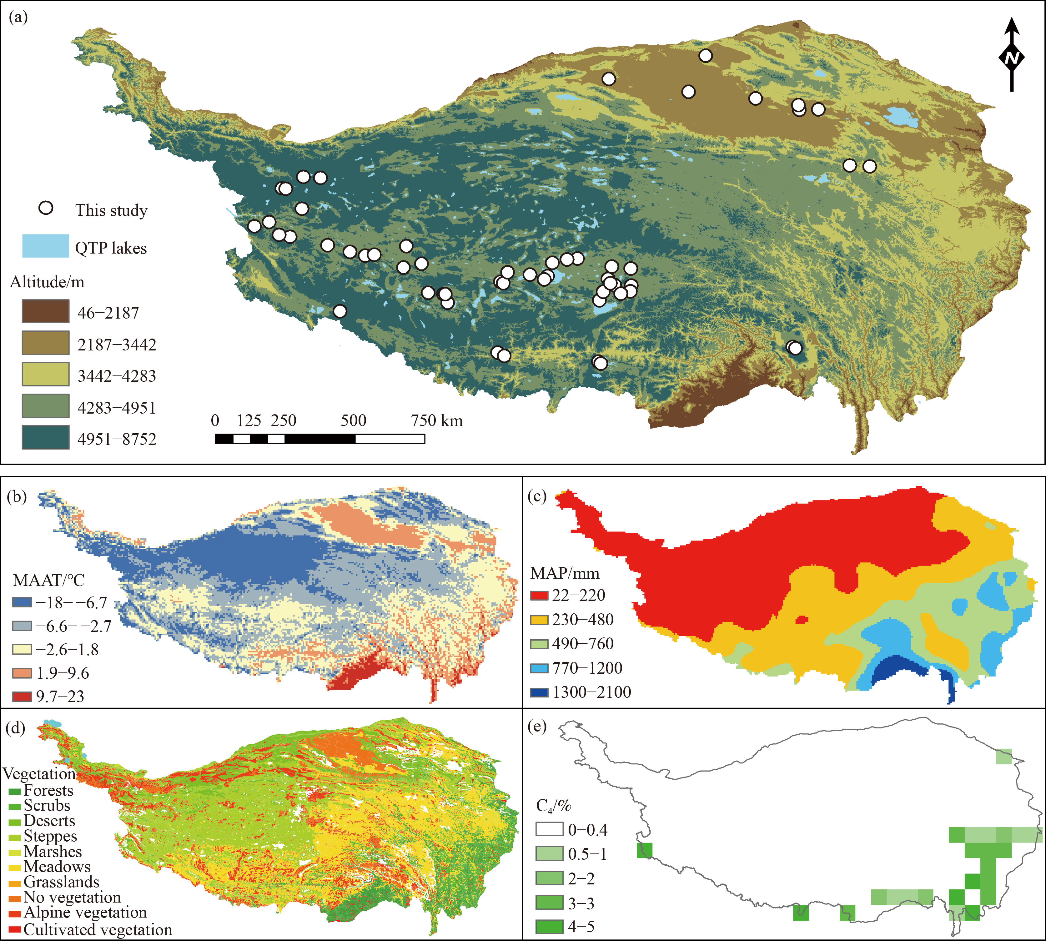 Long-chain n-alkanes are one of the most common organic compounds in terrestrial plants and they are well-preserved in various geological archives. n-alkanes are relatively resistant to degradation and thus they can provide high-fidelity records of past vegetation and climate changes. Nevertheless, previous studies have shown that the interpretation of n-alkane proxies, such as the average chain length (ACL), is often ambiguous since this proxy depends on more than one variable. Both vegetation and climate could exert controls on the n-alkane ACL, and hence its interpretation requires careful consideration, especially in regions like the Qinghai-Tibet Plateau (QTP) where topography, biome type and moisture source are highly variable. To further evaluate the influences of vegetation and climate on the ACL in high-elevation lakes, we examined the n-alkane distributions of the surface sediments of 55 lakes across the QTP. Our results show that the ACL across a climatic gradient is significantly affected by precipitation, rather than by temperature. The positive correlation between ACL and precipitation may be because of the effect of microbial degradation during deposition. Finally, we suggest that more caution is needed in the interpretation of ACL data in different regions.
