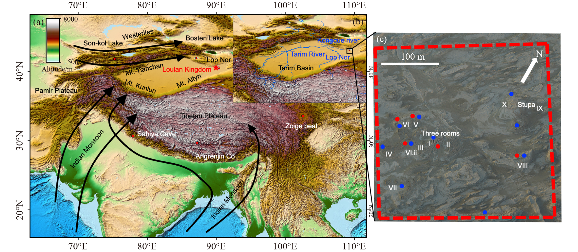 The discovery of Loulan ancient city (LA) in the early 20th century has important significance for understanding the history of Western regions and the Silk Road civilization. The current academic community still has disputes on whether LA was the capital of Loulan Kingdom, the time of its rise, peak and decline, and the process, rate and driving mechanism of human activity change. This study uses the radio carbon dates (14C) database of LA to reconstruct the history of the rise and fall of human activity, and finds that LA experienced more than ~500 years from its rise to its peak and then to its decline: 1) the city rose rapidly, and the population increased rapidly from ~A.D. 0 to 230; 2) the city was prosperous and flourishing, and the intensity of human activity reached its peak from ~A.D. 160 to 340, especially in ~A.D. 230, when the population reached its peak; 3) the city accelerated its decline, and the intensity of human activity decreased significantly, and the population shrank rapidly from ~A.D. 230 to 500; 4) LA was completely abandoned after ~A.D. 560. The results of the 14C dating database do not support that LA was the early capital of the Loulan Kingdom. By comparing the human activity record of LA with the existing high-resolution palaeoclimate records in the surrounding mountainous areas of the Tarim Basin and South Asia, it is found that the superposition of centennial-scale westerly circulation strength events and the ~500-year cycle of the Indian monsoon jointly controlled the precipitation and meltwater (snow) supply of the mountains in the Tarim Basin, affecting the changes of surface runoff and oasis area in the basin, which is one of the important factors causing the rise and fall of LA.