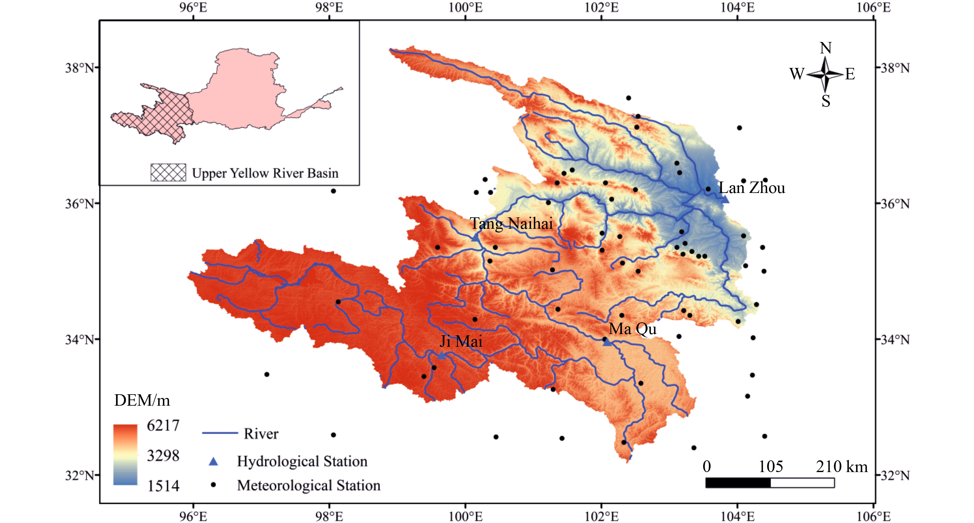 Climate change has significantly impacted the water resources and conservation area of the Yellow River basin. The Upper Yellow River basin (UYR), referring to the area above Lanzhou station on the Yellow River is the focus of this study, the runoff changes in the UYR would greatly impact the water resources in China. Most existing studies rely on a single hydrological model (HM) to evaluate runoff changes instead of multiple models and criteria. In terms of the UYR, outputs of the previous Coupled Model International Comparison Project (CMIP) are used as drivers of HMs. In this study, the weighted results of three HMs were evaluated using multiple criteria to investigate the projected changes in discharge in the UYR using the Shared Socioeconomic Pathways (SSPs) from CMIP6. The research’s key findings include the following. 1) Annual discharge in the UYR is expected to increase by 15.2%−64.4% at the end of the 21st century under the 7 SSPs. In the long-term (2081−2100), the summer and autumn discharge will increase by 18.9%−56.6% and 11.8%−70%, respectively. 2) The risk of flooding in the UYR is likely to increase in the three future periods (2021−2040, 2041−2060, 2081−2100) under all 7 SSPs. Furthermore, the drought risk will decrease under most scenarios in all three future periods. The verified HMs and the latest SSPs are applied in this study to provide basin-scale climate impact projections for the UYR to support water resource management.
