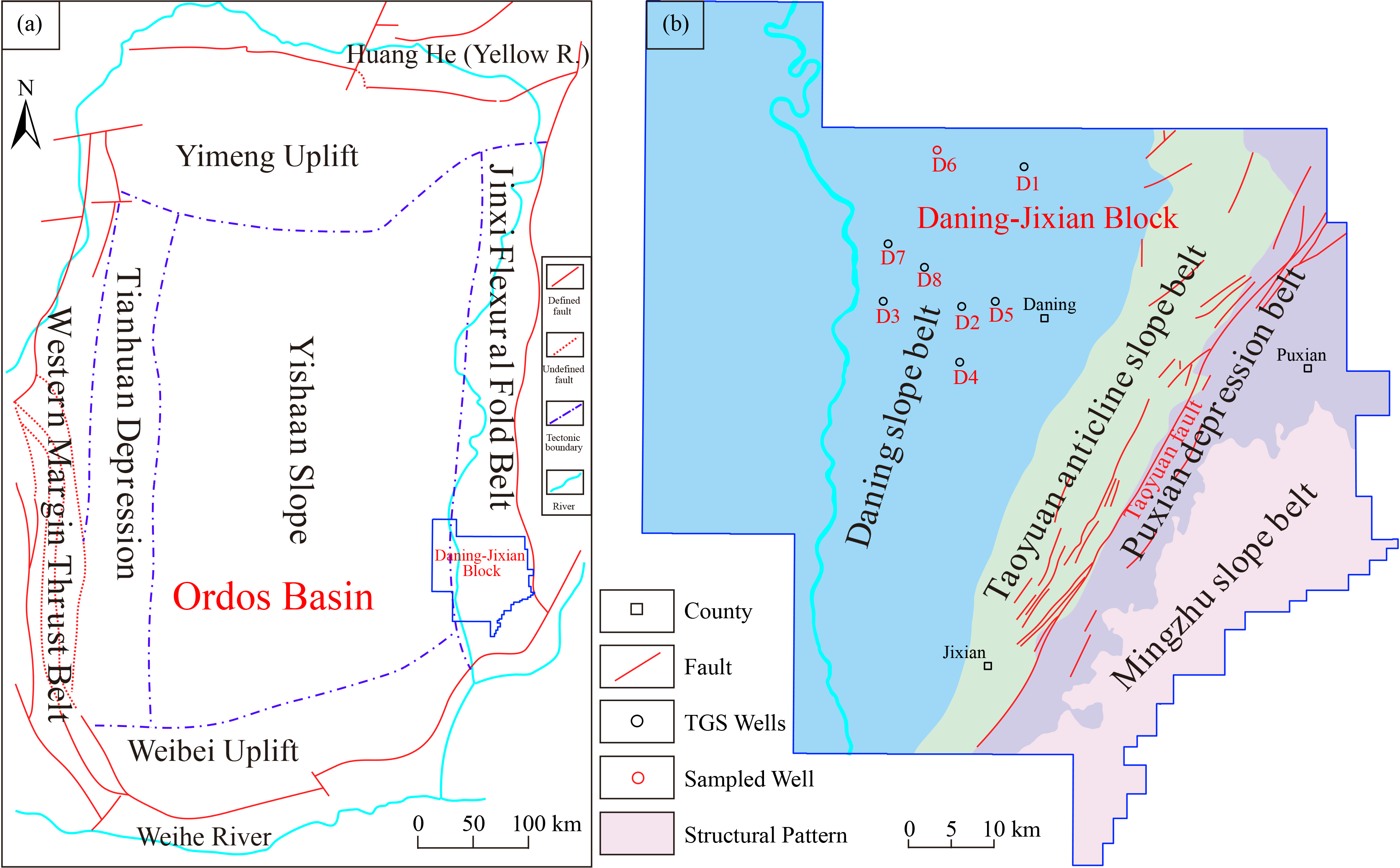 Unconventional natural gas in deep coal measures has become an exploration and research hotspot in recent years. The exploration breakthrough of deep coalbed methane and tight sandstone gas in Daning-Jixian Block in the eastern Ordos Basin has revealed huge resource potential and commercial prospects in the deep Upper Paleozoic Carboniferous-Permian coal measures. However, the ambiguity of gas accumulation in deep coal measures has restricted exploration and development. Based on a series of tests for fluid inclusions, including petrographic observation, Raman spectroscopy analysis, and microthermometry, combined with the burial-thermal evolution history recovered from basin modeling, this study aims to clarify the timing of gas accumulation in deep coal measures. The results show four types of secondary fluid inclusions in the deep coal measure sandstone layers of Daning-Jixian Block, including CH4-rich inclusions, C2+ hydrocarbons-bearing inclusions, CO2-bearing inclusions, and aqueous inclusions. The main formation stage of fluid inclusions corresponded to the mesodiagenesis stage of the deep coal measure sandstone, and the coeval assemblages of fluid inclusions vary due to the recording of gas charging in different maturity stages of coal measure source rocks. This study suggests that tight sandstone gas accumulation in deep coal measures was a continuous charging process with one period-multiple episodes in Daning-Jixian Block, and occurred mainly during the Early Cretaceous (137−127 Ma BP). The results of this study contribute to further understanding of gas accumulation mechanisms in deep coal measures.