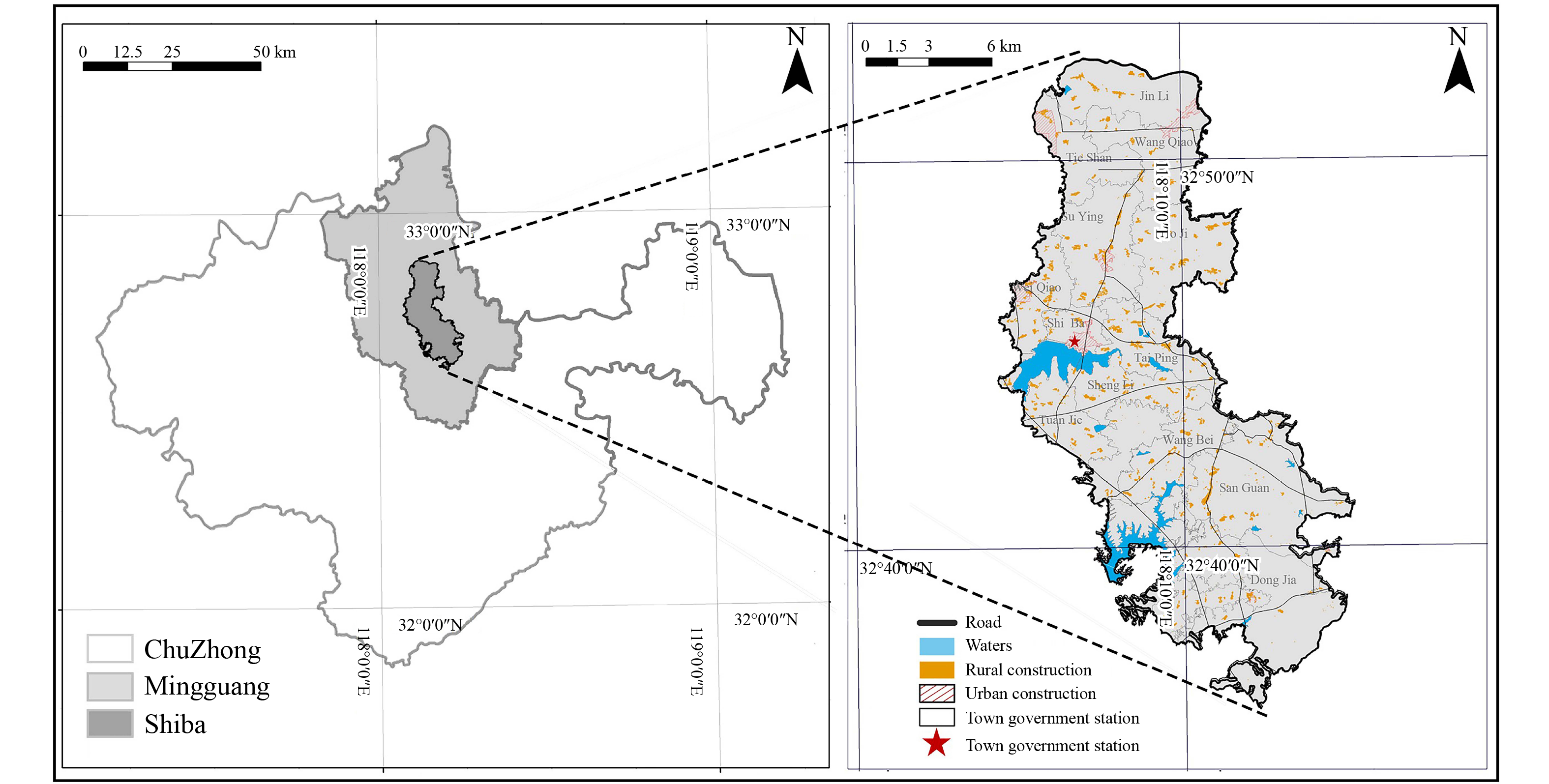 Amidst the rapid pace of urban development, rural communities continually face the challenges posed by erratic natural disasters and human-induced disturbances. Evaluating and improving the resilience of rural areas is crucial for achieving sustainable development. Examining the rural network framework serves as a method to achieve rural resilience. This study established a contact network encompassing 13 villages in Shiba town, Mingguang City, through the collection of time-distance data, questionnaire interview data, and map vector data to examine the spatial patterns of the rural network. The examination of structural resilience was conducted through the framework of complex network theory. The examination of the network’s transitivity and diversity through the frameworks of hierarchy, matching, transitivity, and aggregation reveals its resilience to disruption simulations, such as node failure. The findings indicate that the network exhibits a configuration marked by a dense central region, sparse connections in the north, and a lack of connectivity in the south. The network exhibits a flat structure, with nodes that are relatively uniform in nature. The network exhibits significant disassortativity, classifying it as a disassortative network, where villages with higher node degrees tend to connect with those having lower node degrees. The local transitivity of the network is significantly elevated, with approximately 90% of settlements necessitating just one transfer to establish direct communication. The network exhibits significant clustering effects, marked by robust connections among villages and a few isolated node villages. The transitivity of the network and its diverse spatial patterns show markedly different characteristics when subjected to interruption simulation. The study identified two primary nodes and one susceptible node. The findings from the study precisely reflect the characteristics of the rural network. This can provide theoretical perspectives for analyzing the resilience of rural network structures and support decision-making in rural planning and development.