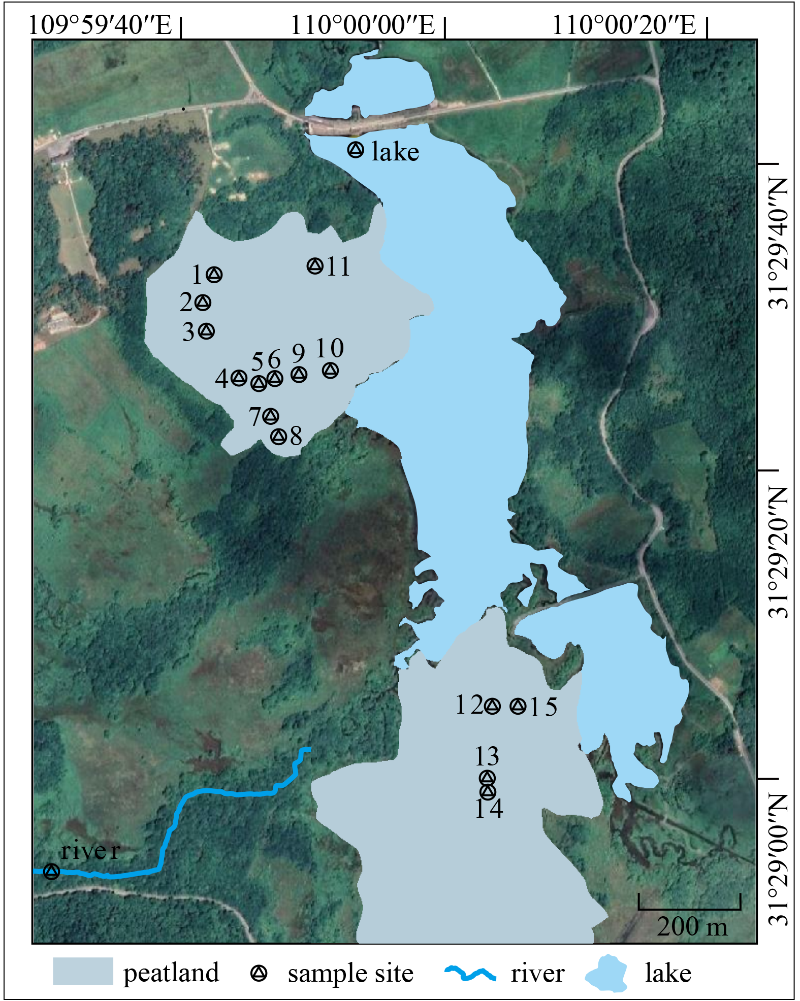 The hydrogen isotope composition of leaf wax n-alkanes (δ2Halk) has been used to reconstruct hydroclimate conditions, yet the factors that influence it are not fully understood, particularly the control of soil pore water δ2H. This study monitored the temporal and vertical variations of peat pore water δ2H (δ2Hpw) from 2015 to 2019 in the Dajiuhu peatland, central China. Results showed that δ2Hpw was highly variable in the surface layers (0−10 cm; avg. −47‰, 1σ = 11‰) and remained almost constant in deeper depths (below 50 cm; avg. −56‰, 1σ = 2‰). The δ2Hpw of the 0−10 cm layer was strongly correlated with the preceding month’s precipitation δ2H (δ2Hp) in the adjacent area (r = 0.7, p < 0.01), indicating that δ2Hp is the main factor affecting the temporal variations of δ2Hpw in the upper layers. Moreover, the surface (0−10 cm) peat pore water slightly deviated from the local meteoric water line, suggesting that evaporation may also have an effect on the δ2Hpw. These findings emphasize the importance of precipitation isotope composition in interpreting the δ2Halk in peat deposits under subtropical climates.