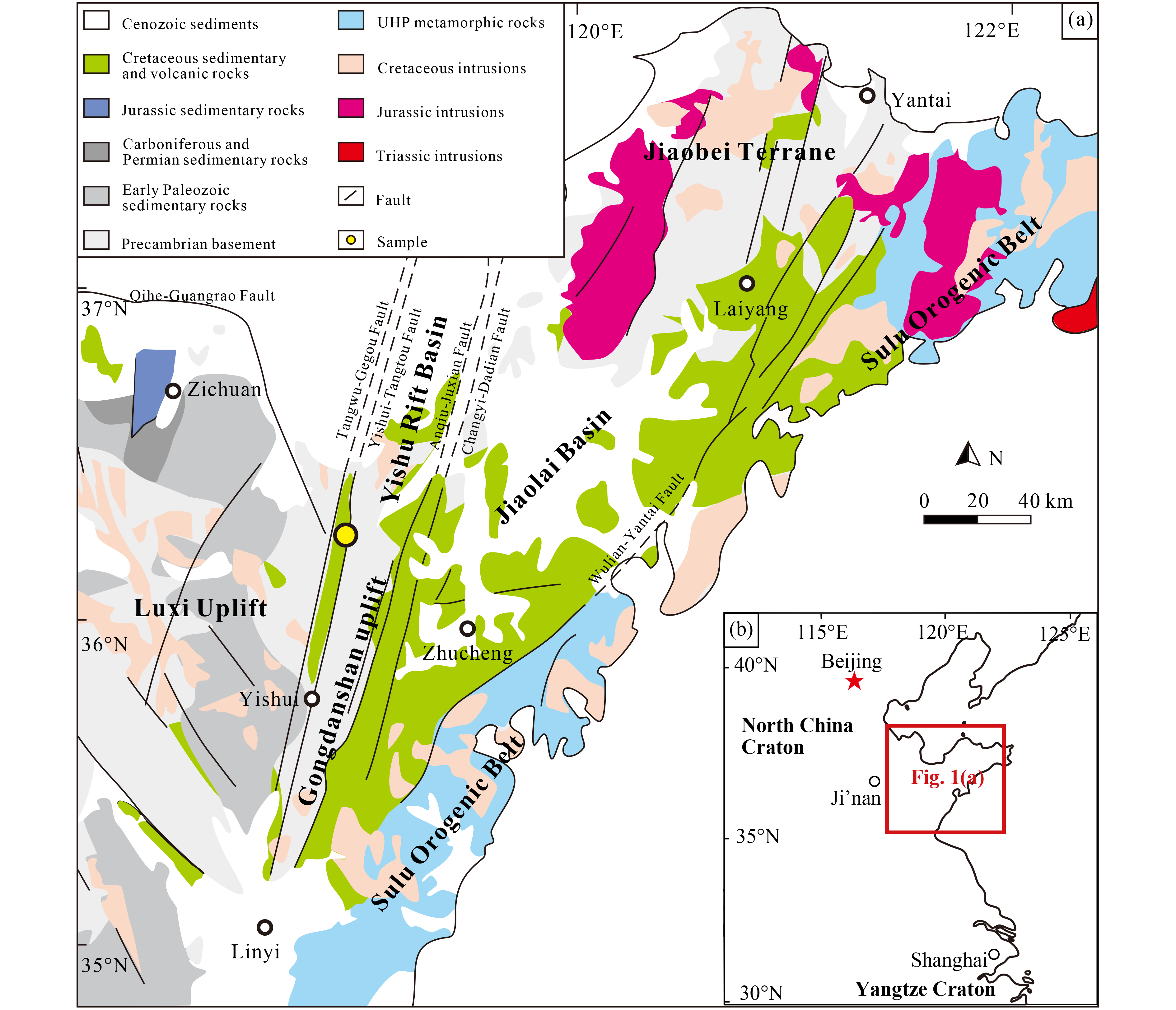 An early Late Cretaceous NW-SE compressional event that induced the uplift of the coastal mountains was recognized among the overall extensional regime in east China. While previous studies have explored the paleoelevation, paleogeographical extent, and possible climatic effects of coastal mountains, the exact timing of initial uplift has remained elusive. In this study, we applied detrital zircon U-Pb geochronology to sandstones from the Dasheng Group in the Yishu Rift Basin, east China. Our results suggest that the primary provenance of the Dasheng Group is intermediate-basic volcanic rocks (800–500 Ma, 330–215 Ma, and 150–122 Ma) derived from the Luxi Uplift and Sulu Orogenic Belt, and the secondary provenance is Mesoproterozoic-Paleozoic metamorphic rocks (2500–2300 Ma and 1850–1600 Ma) derived from the Jiaobei Terrane. The zircon age peaks of the Dasheng Group in the Yishu Rift Basin are nearly the same as those of the Lower Cretaceous Laiyang Group in the Jiaolai Basin. However, the proportion of pre-Mesozoic zircons decreases. For the Mesozoic zircons, although their main age peak is close to that of the Laiyang Group, their secondary age peak is similar to that of the Wangshi Group. We infer that the transitional characteristic of the Dasheng Group was caused by the initial uplift of the coastal mountains. Therefore, we speculate that the initial uplift of the coastal mountains occurred during the deposition of the Dasheng Group, and limit the maximum depositional age (MDA) of the Dasheng Group to 100–95 Ma.