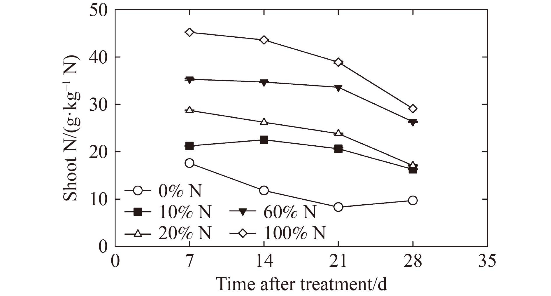 Nitrogen (N), one of the essential mineral elements, is involved in many biochemical processes and ultimately closely relates to agronomic yield. Our ability to monitor N concentrations in plants through direct tissue sampling or remote sensing has rapidly evolved as technology has advanced. However, functional relationships between morphological and physiological processes and tissue N have yet to be widely published and are needed to advance precision and predictive agricultural technologies further. Therefore, an experiment was conducted to determine the relationships between tissue N concentration and corn (Zea mays L.) morphological and physiologic characteristics. Plants were grown in pots under optimal conditions in sunlit controlled-environment chambers but with varying N supplies. Plant growth, developmental, and physiologic properties were monitored weekly. Shoot N content differed among treatments and declined over time for all treatment levels. Photosynthesis declined as N content decreased, but these decreases were largely non-stomatal limiting. Reductions in N content were due to declining chlorophyll and N balance index values and increasing flavonoids and anthocyanins. Stem elongation and leaf expansion were highly sensitive to declining N content. Below the soil surface, root growth and development rates fell and held a quadratic relationship with N content. Roots were less sensitive at low N stress levels than plant growth above the soil surface. The functional relationships produced from this study could help update crop simulation models and apply them to emerging precision agriculture technologies.