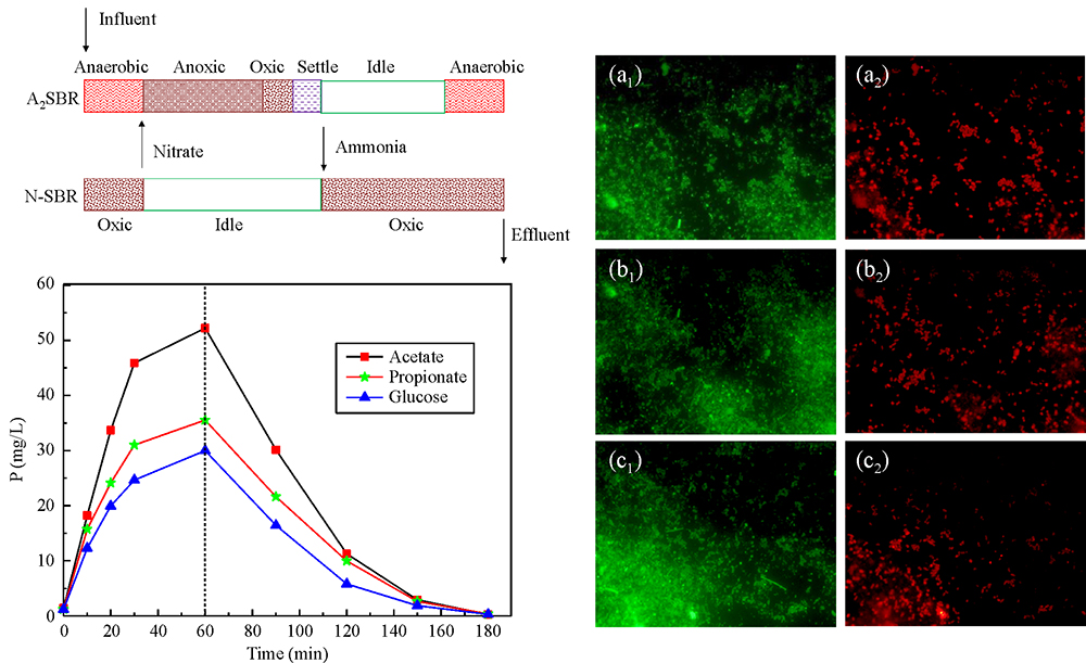 A novel two sludge pre-A2NSBR system was developed. Advanced N and P removal was optimized to treat real domestic wastewater. Nitrifiers and PAOs were enriched with 19.41% and 26.48%, respectively. Acetate was demonstrated as the high-quality carbon source type.