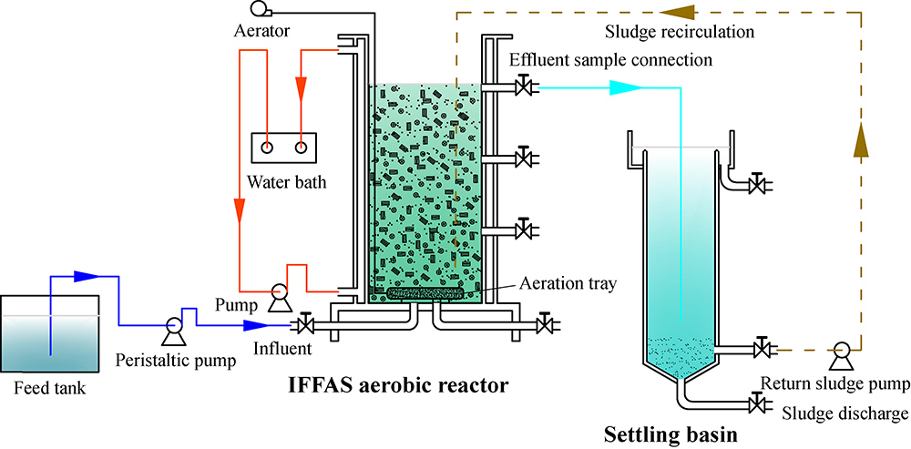Novel carriers with favorable electrophilicity and hydrophilicity were prepared. Novel carriers had the capability of nitrification-enhancing. NH4+-N removal efficiency of IFFAS process rose up to 20% with novel carriers. Nitrosomonadales and Nitrospirales were identified as the functional nitrifiers. The population of Nitrospirales increased by 4.51%.