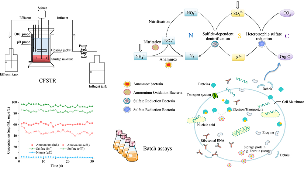 • The SRAO phenomena tended to occur only under certain conditions. • High amount of biomass and non-anaerobic condition is requirement for SRAO. • Anammox bacteria cannot oxidize ammonium with sulfate as electron acceptor. • AOB and AnAOB are mainly responsible for ammonium conversion. • Heterotrophic sulfate reduction mainly contributed to sulfate conversion.