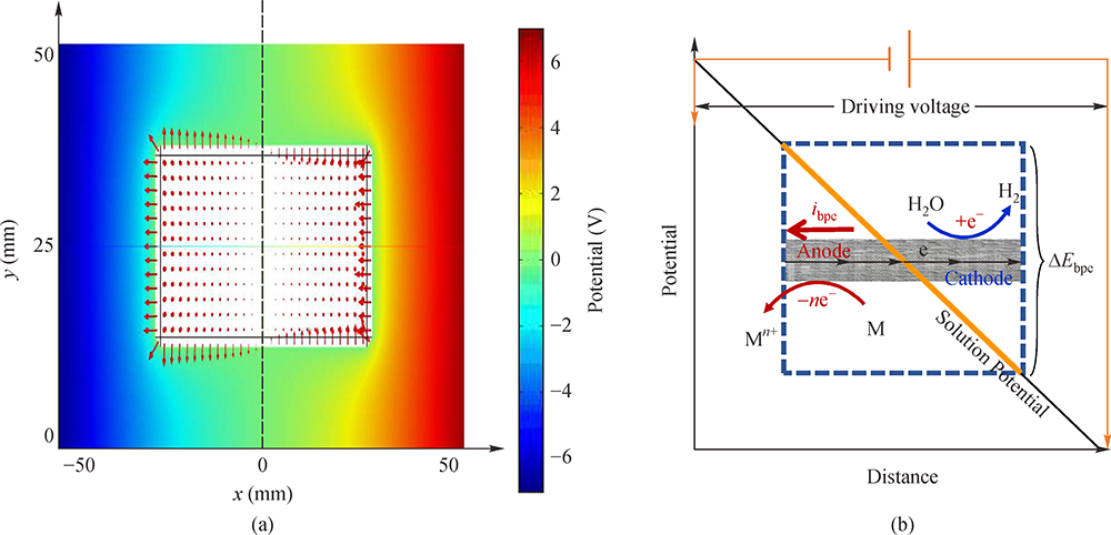 The design of electrodes is crucial to electrocoagulation process (EC), specifically, with respect to pollutant removal and energy consumption. During EC, the mechanisms for interaction between different electrode arrangement and electrode reactions remain unclear. This work presents an integrated EC process based on horizontal bipolar electrodes (BPEs). In the electrochemical cell, the graphite plates are used as driving cathode while either Fe or Al plates serves as driving anode and BPEs. The BPEs are placed horizontally between the driving electrodes. For municipal wastewater treatment, the pollutant removal efficiency and energy consumption in different configurations of two-dimension electrocoagulation (2D-EC) system with horizontal BPEs were investigated. The removal efficiency of turbidity, total phosphorus and total organic carbon increased significantly with the number of BPEs. Noted that the energy consumption for TP removal decreased by 75.2% with Fe driving anode and 81.5% with Al driving anode than those of 2D-EC, respectively. In addition, the physical field simulation suggested the distributions of potential and current in electrolyte and that of induced charge density on BPE surface. This work provides a visual theoretical guidance to predict the distribution of reactions on BPEs for enhanced pollutant removal and energy saving based on electrocoagulation process for municipal wastewater treatment.