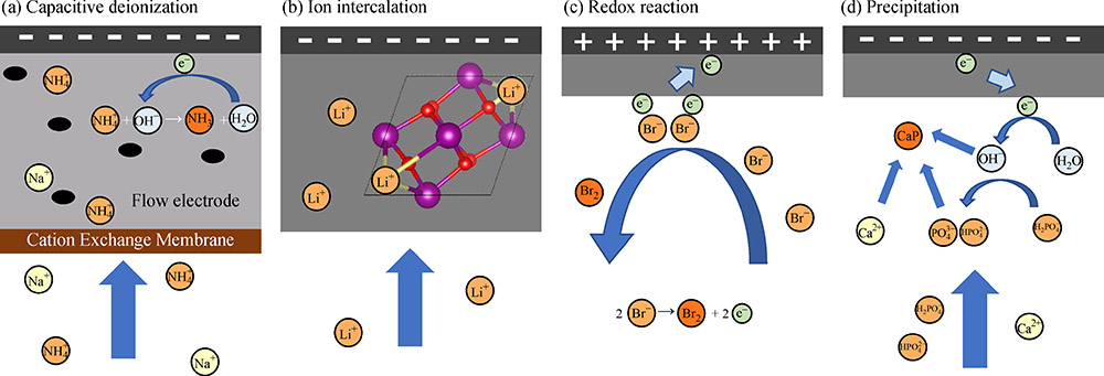 • Mechanisms for selective recovery of materials in electrochemical processes are discussed. • Wastewaters that contain recoverable materials are reviewed. • Application prospects are discussed from both technical and non-technical aspects.