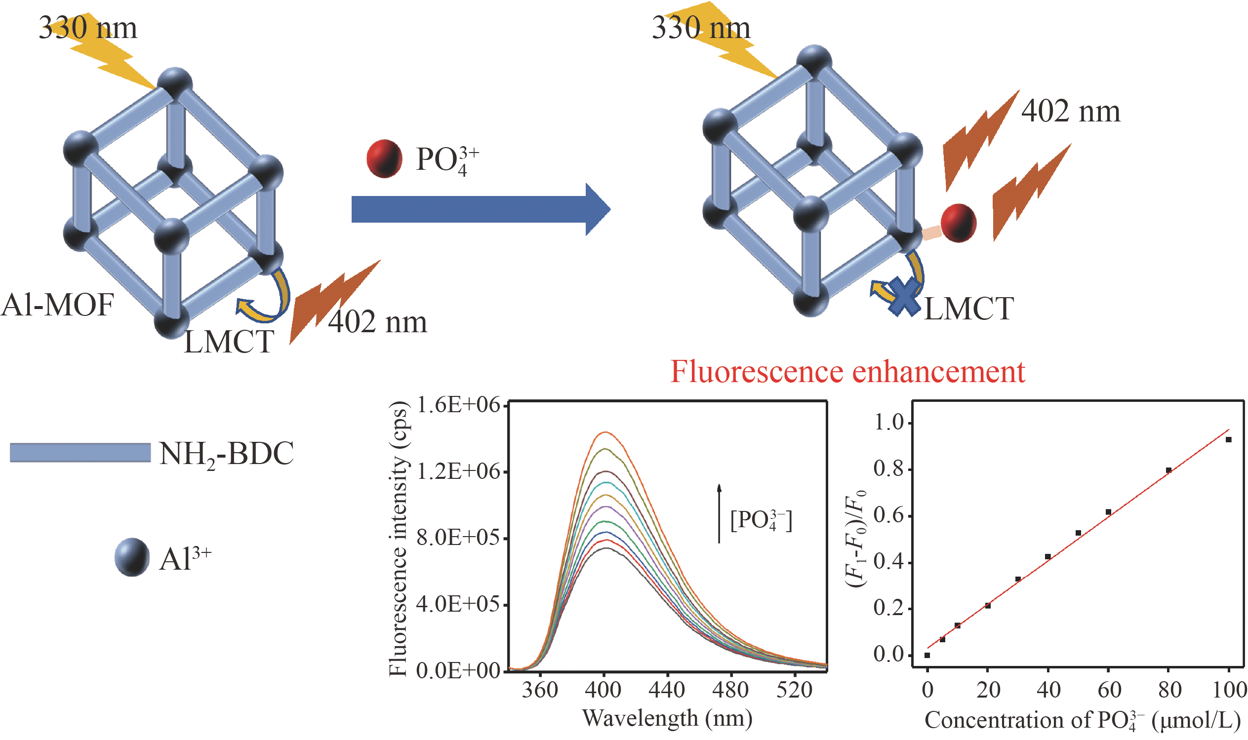 ● A novel Al-MOF was successfully synthesized by a facile solvothermal method. ● Al-MOF showed superior performance for phosphate detection. ● High selectivity and anti-interference for detection were demonstrated. ● The high coordination between Al-O and PO43− was the key in fluorescence sensing.