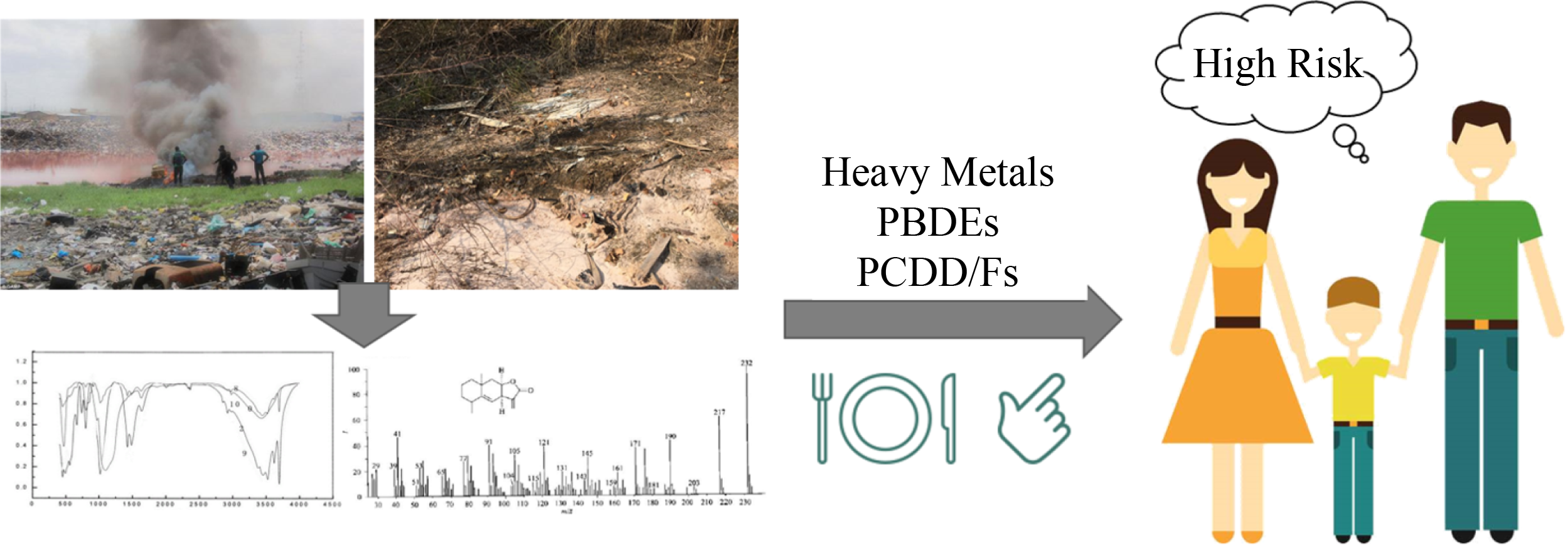 ● Heavy metals and organic toxins may persist in legacy sites for a long time. ● Contaminants pose potential harms to the nearby community (HI > 1). ● PCDD/Fs had the risk of endocrine disruption and reproductive risk. ● Further intervention is needed to reduce pollution and related risks.