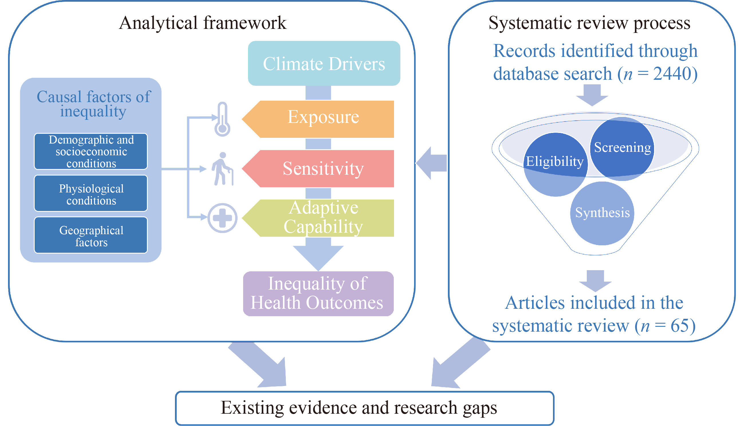 ● Varied factors lead to uneven climate health outcomes were revealed. ● Poor people, ethnic minorities, and females are most-studied vulnerable groups. ● Research gaps and methodological challenges were identified.