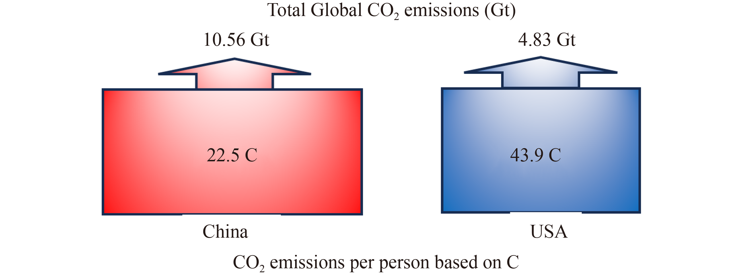 ● Express energy use and carbon emissions in understandable numbers. ● Normalize energy use to daily food energy using “D”. ● Ratio carbon emissions to those from daily food using “C”. ● Based on the entire country China emitted 22.5 C and the US emitted 43.9 C (2022). ● Personal choices such as the car you drive, food you eat, and home heating lower C.