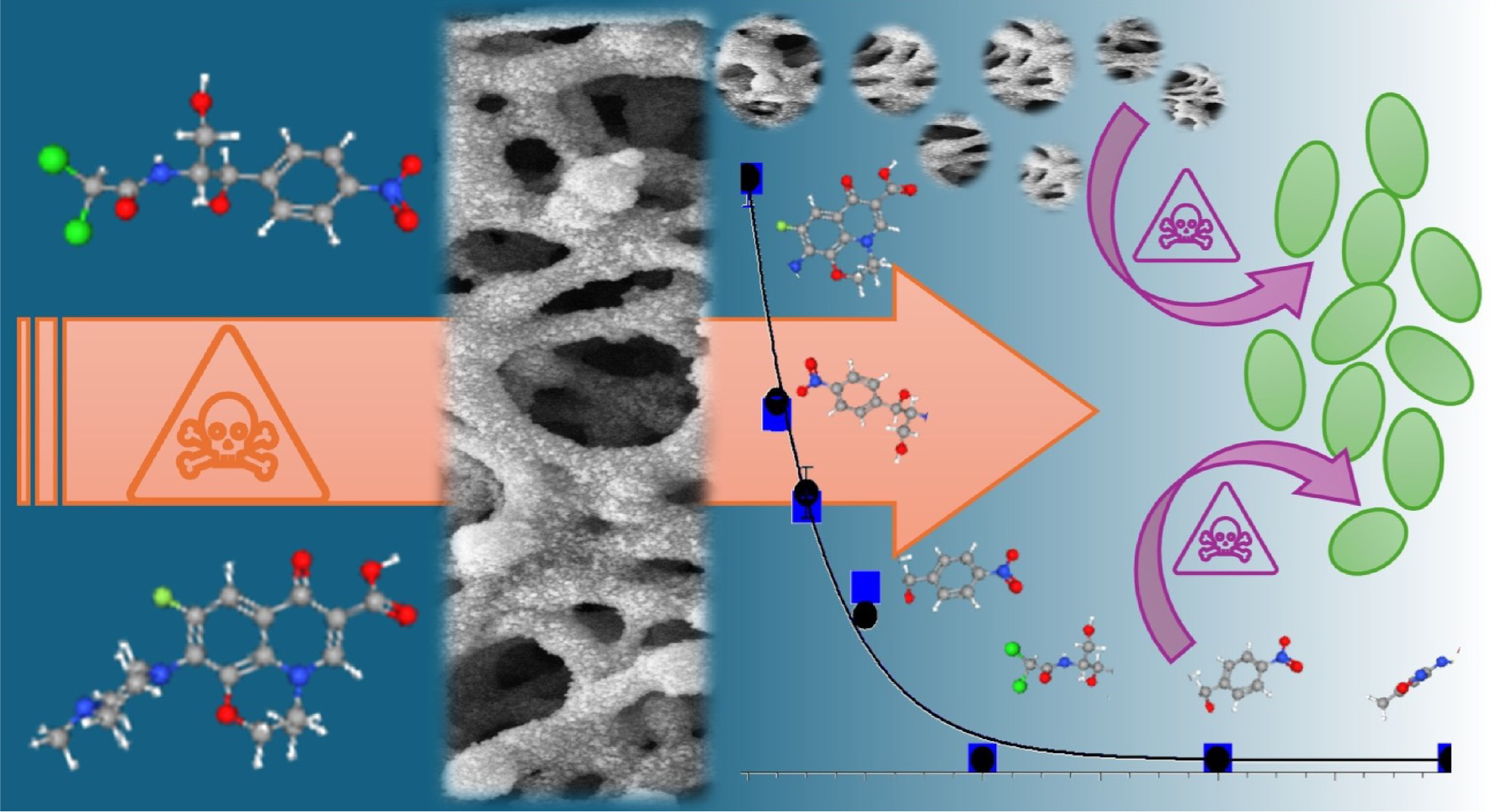 Antibiotic residues in wastewater promote the emergence of resistant bacteria, posing a serious potential threat to human health and ecosystems. Effective degradation strategies are crucial for removing antibiotics from wastewater. In this study, a photocatalytic polymer membrane was used to treat three antibiotics, i.e., sulfamethoxazole, chloramphenicol, and ofloxacin. In parallel with chemical analysis, the acute and chronic toxicity of the antibiotics and their degradation mixtures to the freshwater green alga Scenedesmus vacuolatus was assessed. Photocatalytic membrane treatment of 10 mg/L aqueous solutions (and 1100 mg/L for ofloxacin) achieved complete parent-compound removal, with half-lives ranging from 6.2–102.3 min. Toxicity measured at successive irradiation times revealed initial detoxification followed by increased toxicity due to transformation products and by-products caused by membrane photoaging, limiting the total detoxification effectiveness. The results underscore the promise of photocatalytic membranes for antibiotic removal while highlighting the critical importance of photostable polymer–photocatalyst materials to prevent secondary ecotoxicological effects in water treatment applications. These results further demonstrate the need to combine chemical and toxicological methods to validate new technologies for wastewater treatment.