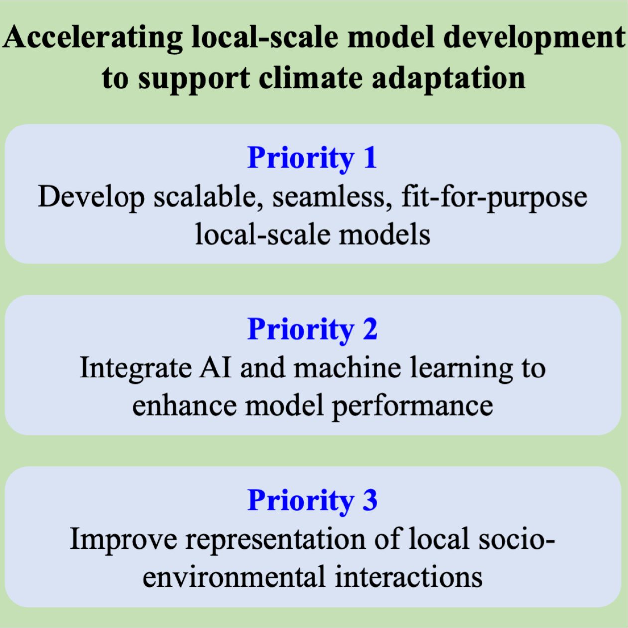 Climate change presents a critical global challenge, threatening human well-being, ecosystems, economies, and societies. While mitigation efforts remain essential and critically important, the growing urgency of climate impacts necessitates immediate and effective adaptation measures. Effective adaptation strategies require advanced modeling tools with higher resolution, integration of ecosystem and social dynamics, and the ability to assess diverse adaptation scenarios. Local-scale models, which are performed at the scale of an administrative region, a country, or a specified region, are particularly valuable as they can incorporate specific adaptation measures and generate precise, context-specific insights. These models play a key role in formulating tailored climate adaptation strategies and action plans. This paper explores the significance and challenges in developing such models, emphasizing the pressing need to accelerate their advancement. We call on the scientific community and policymakers to prioritize the development of tailored local-scale modeling tools and services to enhance resilience and better support adaptive responses to the complex and evolving challenges posed by climate change and rapid urbanization at the local level.