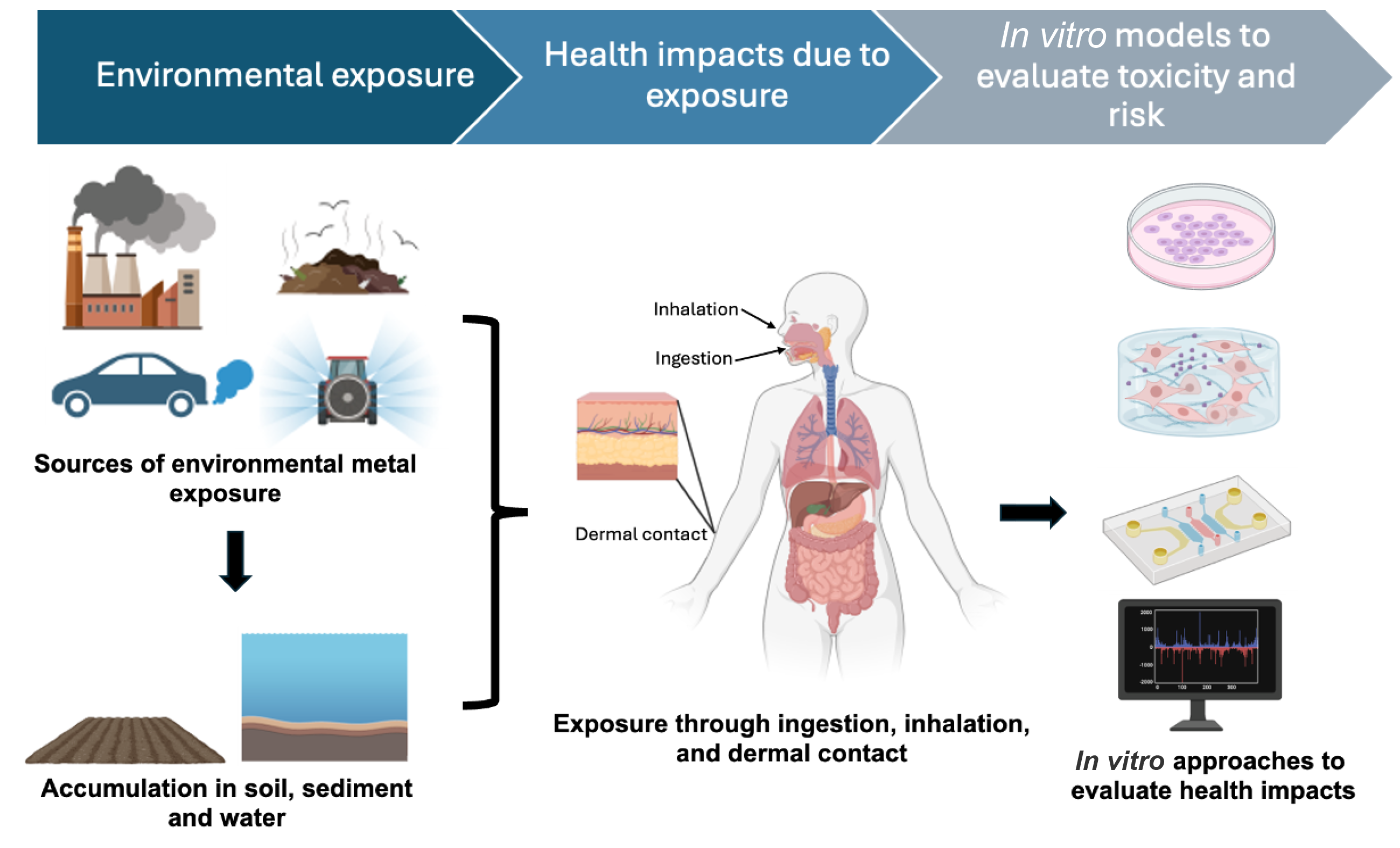 Heavy metals are ubiquitous environmental pollutants, contaminating air, soil, and water via the erosion of natural deposits, as well as originating from anthropogenic sources, such as agriculture, industries, transportation, and landfills. The increasing utilization of heavy metals over the years, combined with the persistent nature of metals in the environment poses a direct threat to human and environment health. Although regulatory limits have been established for toxic metals, assessing the associated health risks using real-life exposure scenarios remains challenging. In this review, we summarize the development and use of in vitro models based two- and three-dimensional cell culture systems, focusing on exposure to heavy metals via the dermal, inhalation, and ingestion routes using environmental samples. We also highlight recent developments in three-dimensional cell culture techniques and their potential for implementation in evaluating environmental samples for heavy metal toxicity. In addition, we assess the comparative strengths and specific applications of different modeling approaches, emphasizing the value of integrating advanced in vitro systems in environmental toxicology.